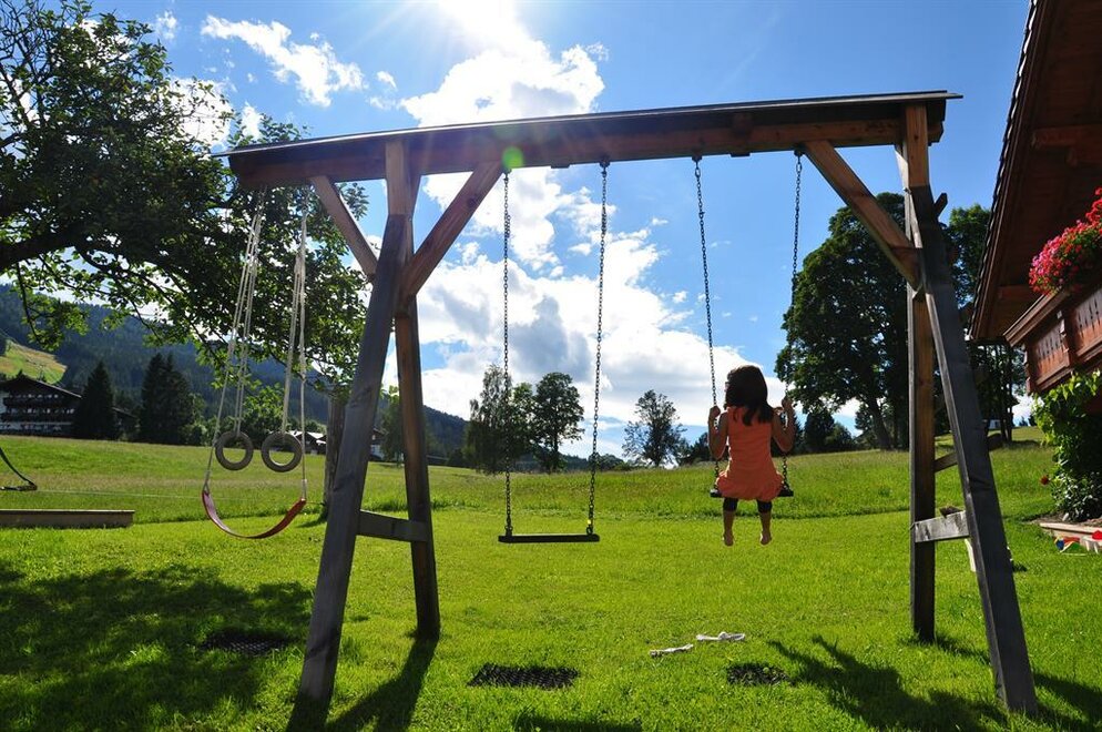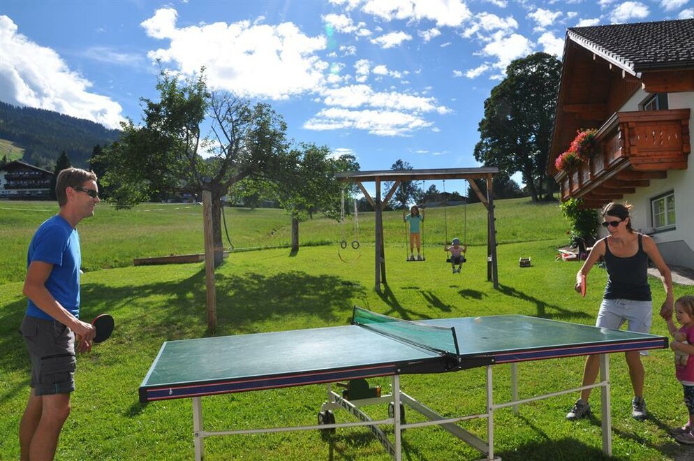 Latem zaprasza stół do ping-ponga na gorące mecze, a mały strumyk przed domem do schłodzenia nóg. Dla dzieci znajdują się dwie piaskownice, huśtawki, wysoko regulowany drążek gimnastyczny oraz nasza mała flota z rowerkami dziecięcymi, hulajnogami, traktorem na pedały i samochodzikami Bobby-Car.