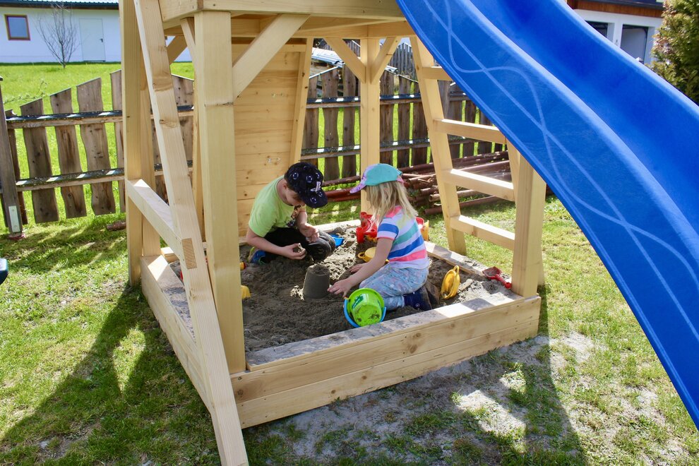 Całkowicie ogrodzony ogród (około 500 m²) sprawia, że Chalet Mama to idealne miejsce na wakacje dla rodzin: