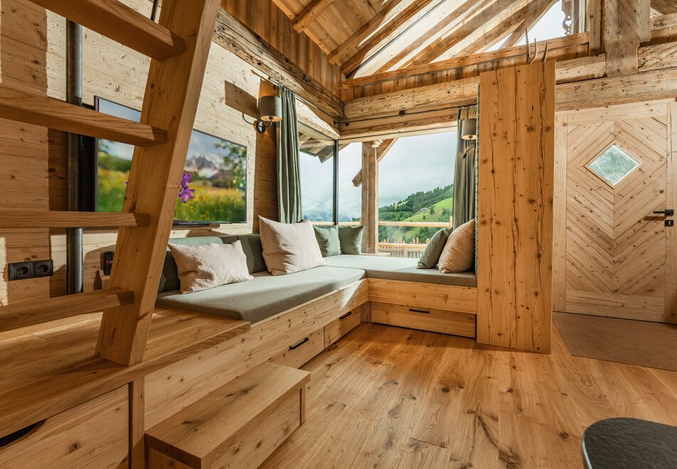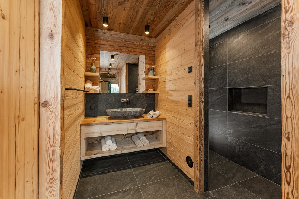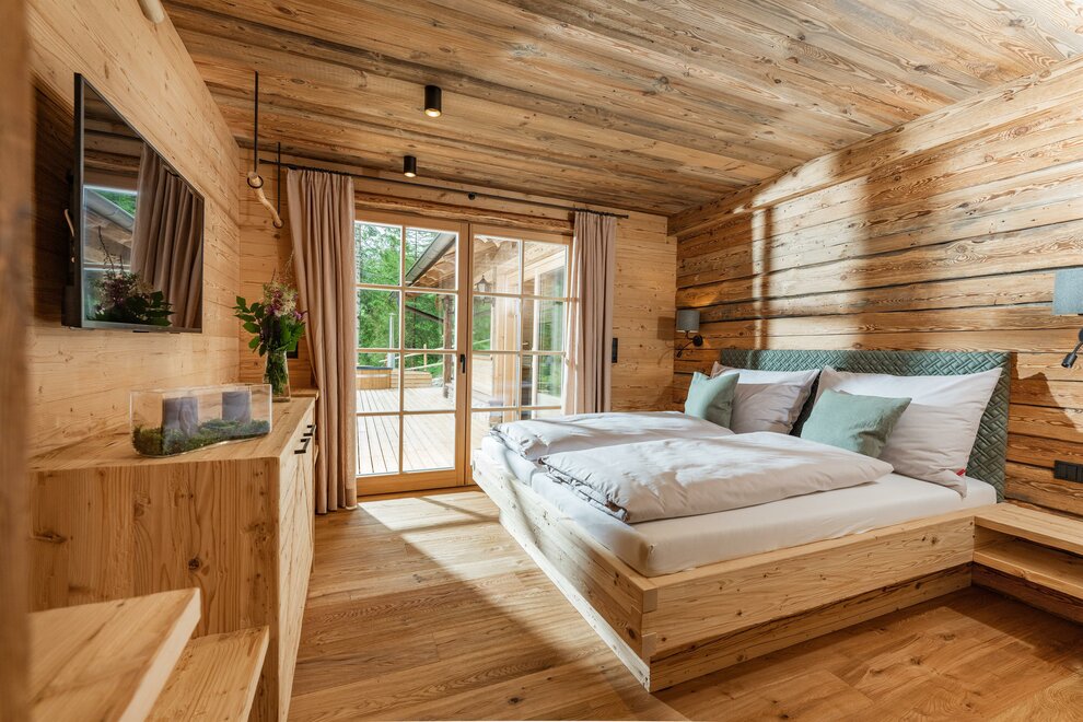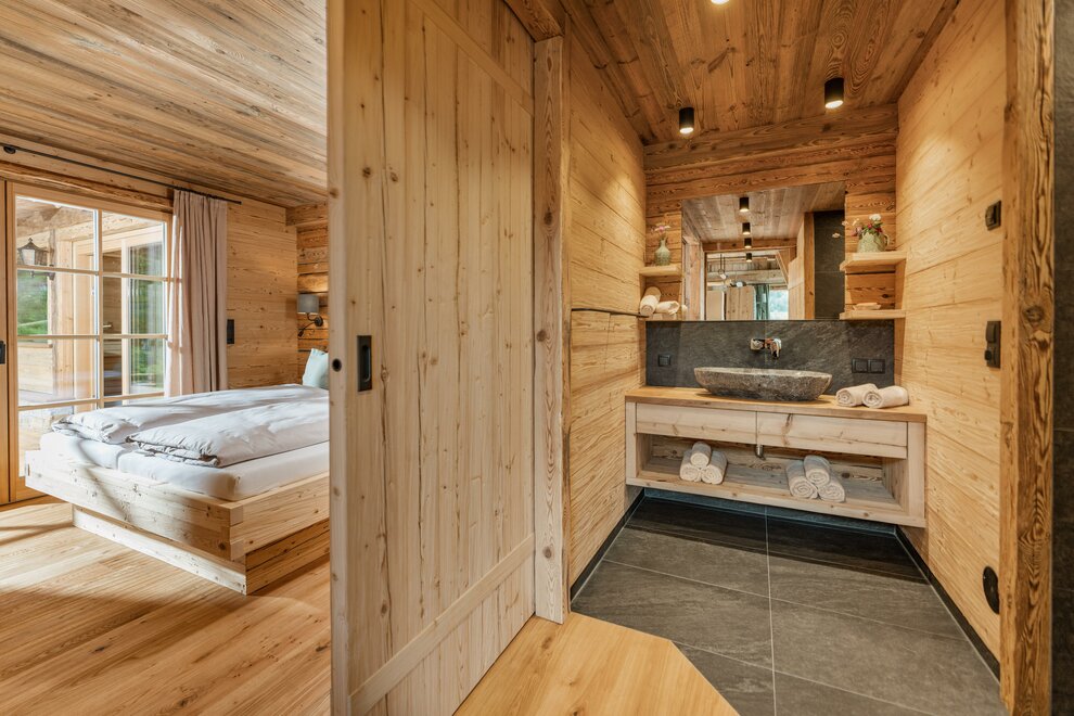 Dwie przestrzenie sypialne można całkowicie oddzielić drzwiami przesuwnymi, co sprawia, że Chalet Alm jest idealny dla 2 dorosłych i 2 do 3 dzieci lub na romantyczny wyjazd. Równie dobrze w chalecie mogą zatrzymać się sportowcy lub przyjaciele, aby wspólnie spędzić czas.