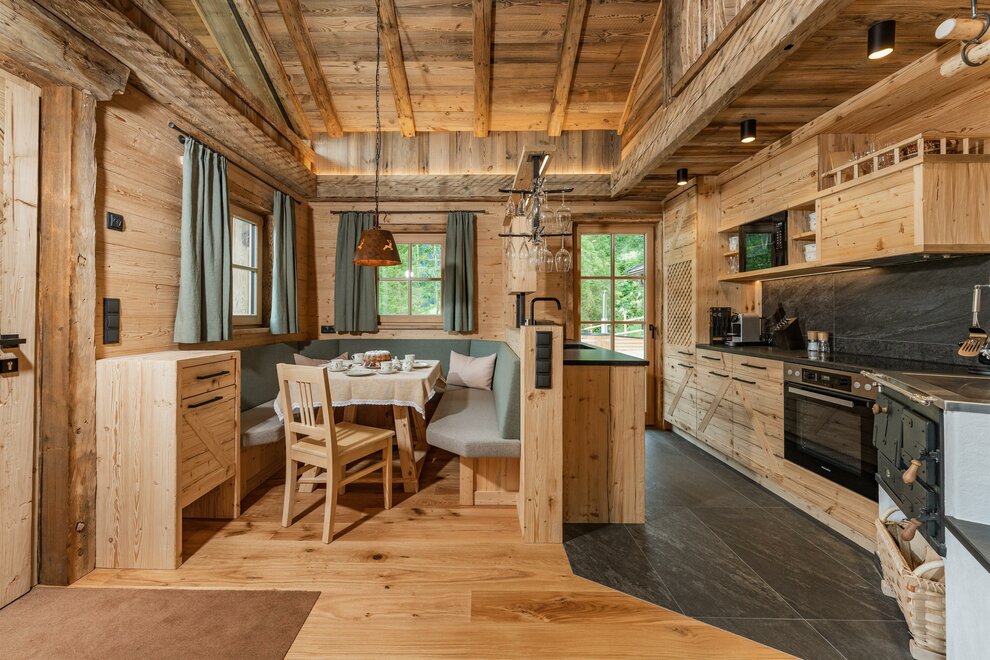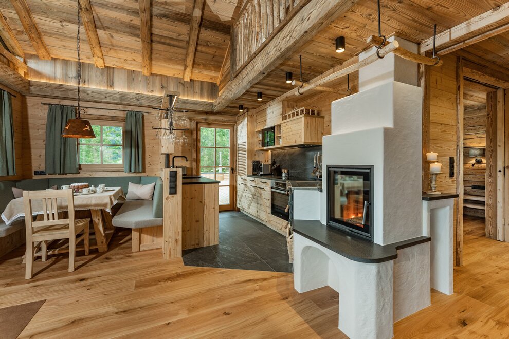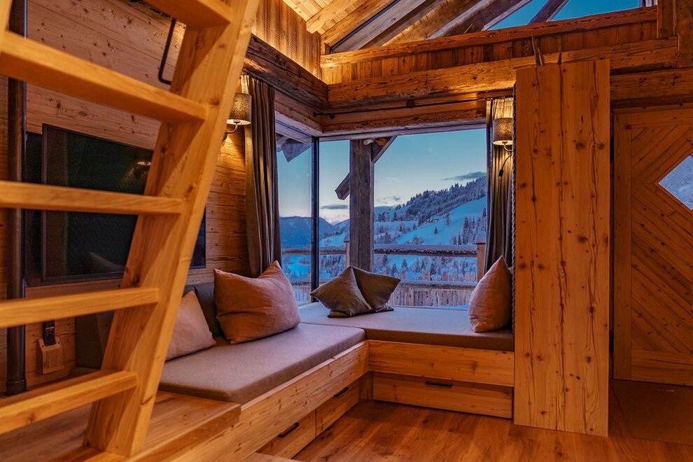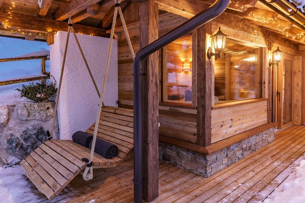 Grzejące drewo pomieszczeń, wygodne materiały oraz uspokajający kamień to prawdziwa ulga dla zmęczonych oczu i umysłu. Naturalny zapach starego drewna w Chalet Alm oraz rustykalne wyposażenie w znacznym stopniu przyczyniają się do relaksu. Naprawdę przytulnie jest z przestronnej leżanki spojrzeć przez okno w kierunku gór, słuchać trzasku kominkowego ognia i podziwiać migoczące kryształki śniegu w zimowym słońcu.