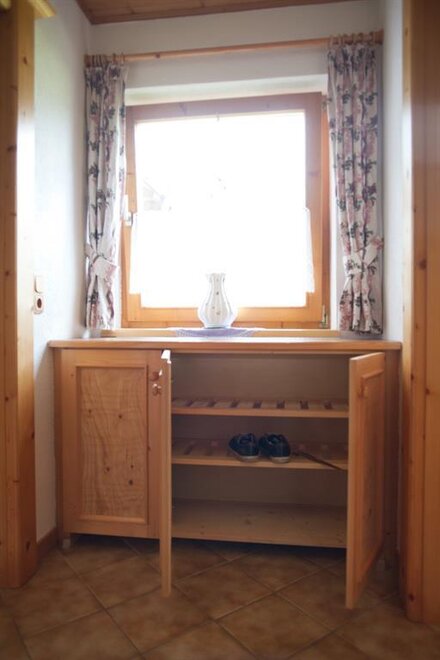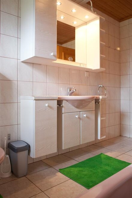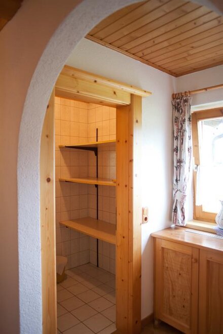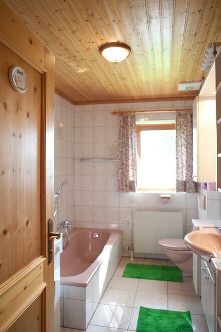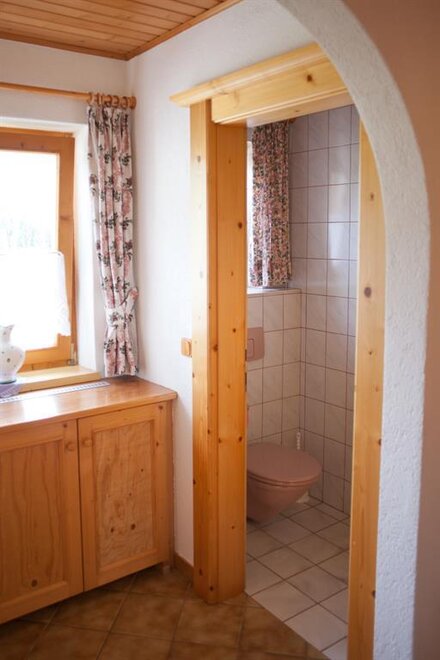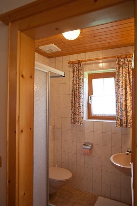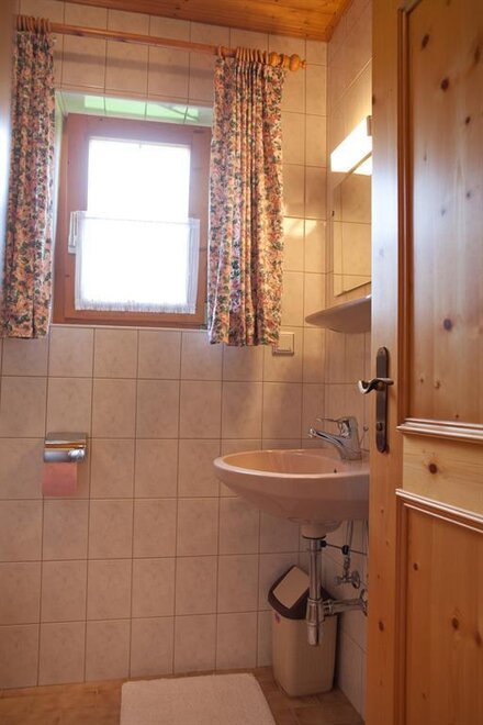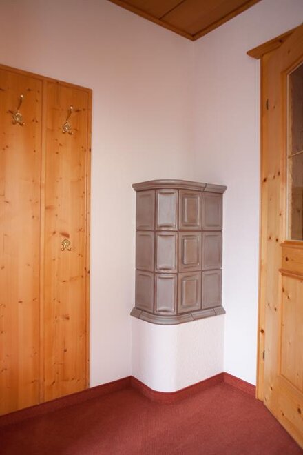 Umeblowanie i wyposażenie Przechodząc przez zadaszoną część wejściową wiatraka, wchodzimy do przedsionka z małą garderobą, gdzie witają nas przyjemne ciepło pieca kaflowego, który jednocześnie ogrzewa inne pomieszczenia. Duża, jasna kuchnia z jadalnią z okrągłym stołem oraz przytulnym kącikiem wypoczynkowym otoczona jest pięknym widokiem i ma dostęp do tarasu w ogrodzie. Kuchnia jest w pełni wyposażona w naczynia i przybory kuchenne, a oprócz ekspresu do kawy, czajnika, mikrofalówki, kuchenki elektrycznej (cztery palniki, piekarnik i okap), lodówki z zamrażarką, znajduje się również zmywarka. Przez przedsionek z dużą szafą przechodzi się do łazienki z wanną, kabiną prysznicową, szafą łazienkową, toaletą i pralką. W przestronnej sypialni rodziców znajduje się miejsce na łóżeczko dziecięce lub dostawkę, a także dostęp do tarasu. Druga sypialnia dla dwóch osób ma małą łazienkę z kabiną prysznicową/toaletą i jest dodatkowo wyposażona w własną lodówkę. Dostępna jest także osobna toaleta oraz spiżarnia/zapasnia lub pomieszczenie gospodarcze z półkami. Pościel, ręczniki, obrusy, ściereczki do naczyń, papier toaletowy oraz różnorodne środki czyszczące są zapewnione. Telewizor LCD z dostępem do satelity i połączeniem internetowym zapewniają nieprzerwany przepływ informacji. Dostępna jest również chatka grillowa, a mali goście mogą bawić się na placu zabaw (z bramką do piłki nożnej, siatką do siatkówki, huśtawką, slackline itp.) Eggerhofu. Dom w zimie jest dodatkowo ogrzewany automatycznie, oprócz pieca kaflowego. Aby uzyskać dalsze informacje, prosimy odwiedzić naszą stronę internetową: www.eggerhof-ramsau.at