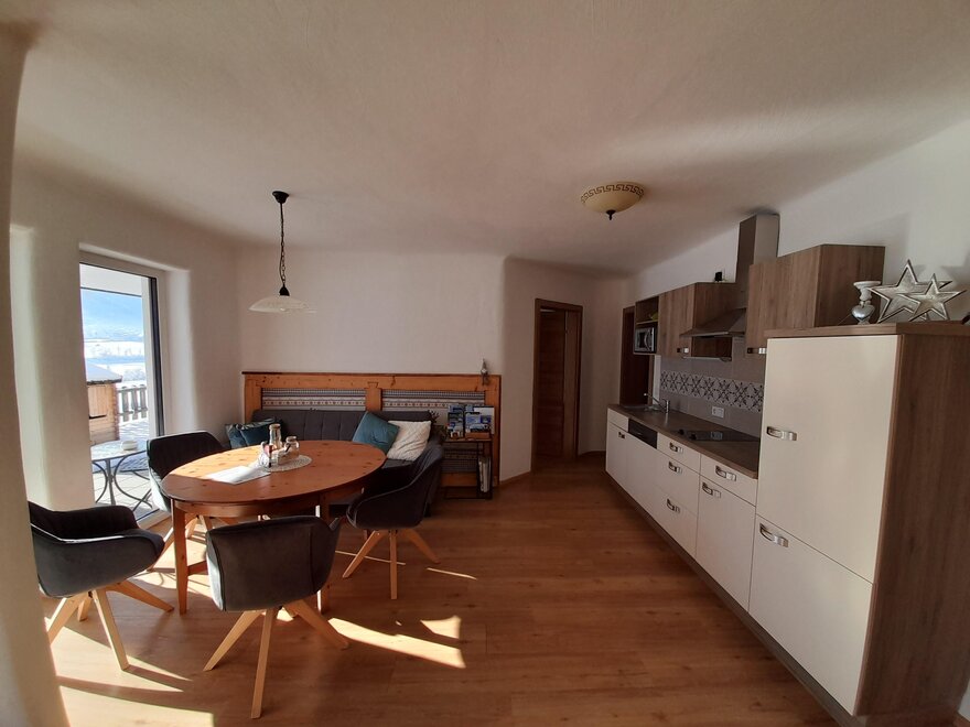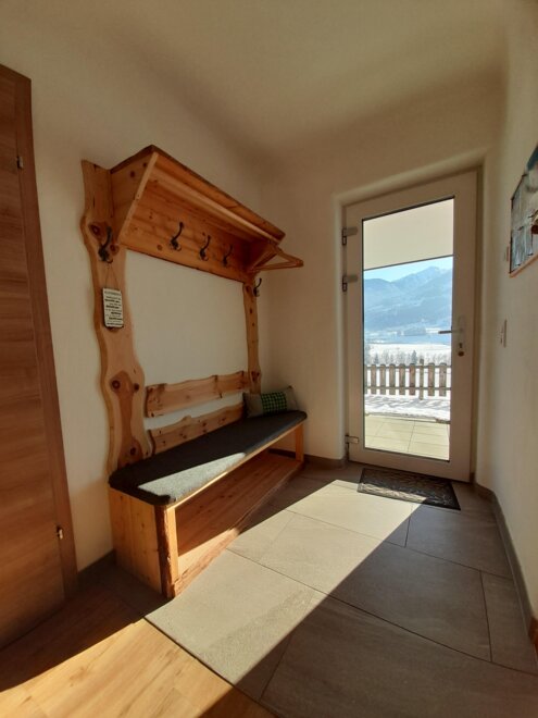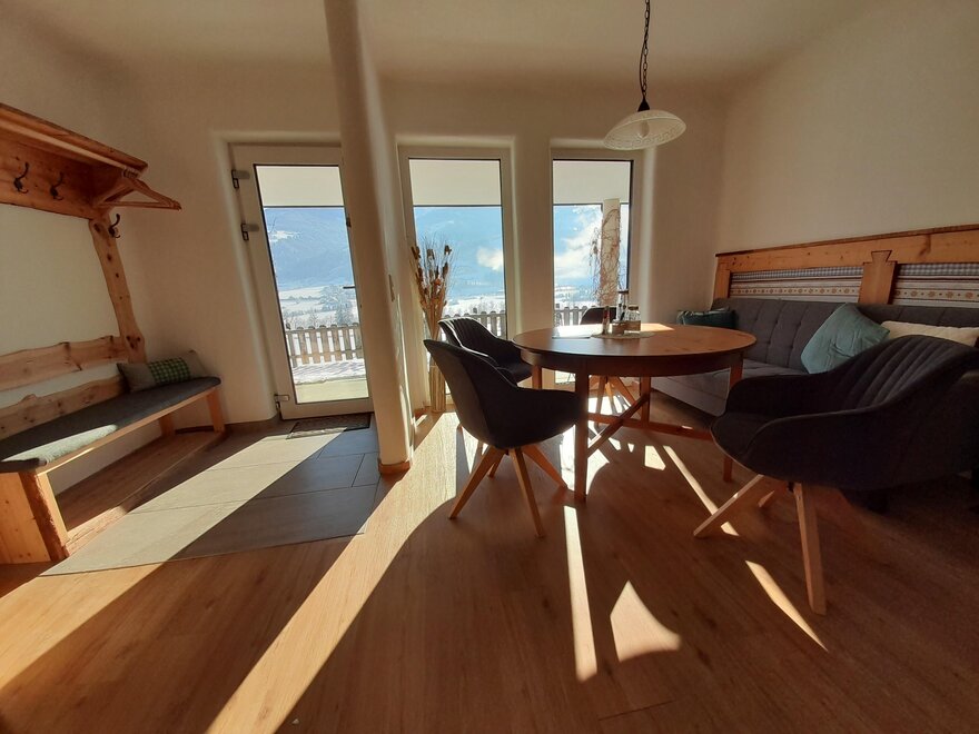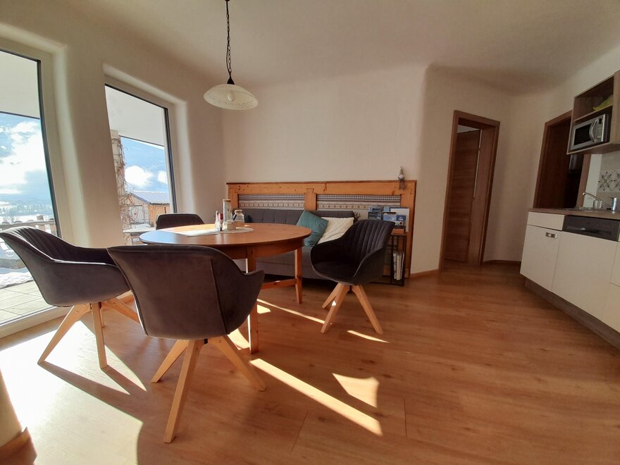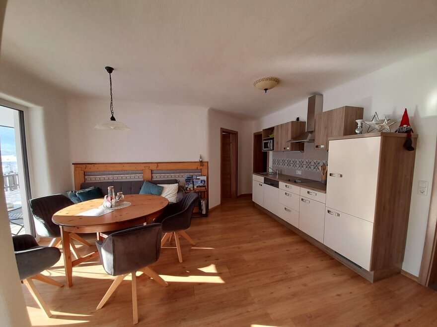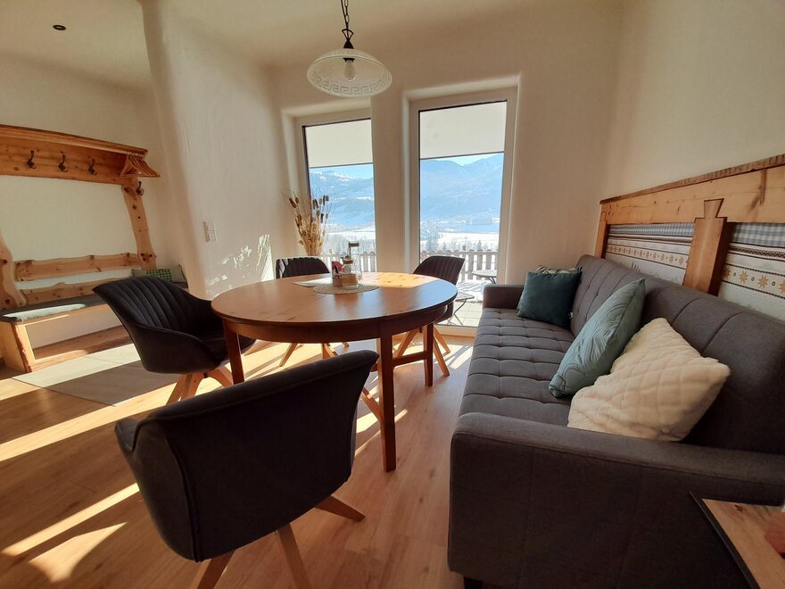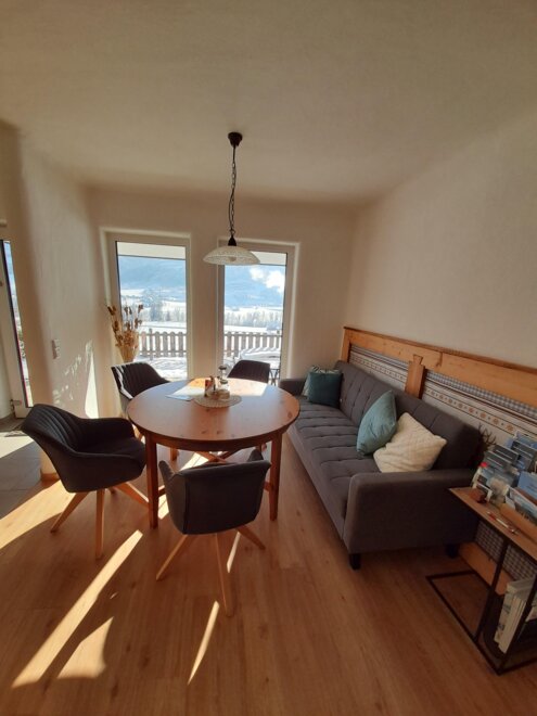 Nasz nowo wybudowany apartament Sunnseitn dysponuje 2 oddzielnymi sypialniami z telewizją kablową oraz w pełni wyposażoną kuchnią z lodówką, zmywarką, ekspresem do kawy, mikrofalówką i wszystkimi innymi udogodnieniami. Do dyspozycji gości jest łazienka z prysznicem oraz osobna toaleta. W całym apartamencie macie dostęp do bezpłatnego Wi-Fi. Tym, co jednak będziecie najbardziej cenić, jest jasna część dzienna z sofą w kuchni oraz przytulny taras dla miłośników słońca z niesamowitym widokiem na przeciwległe góry Schladminger Tauern.