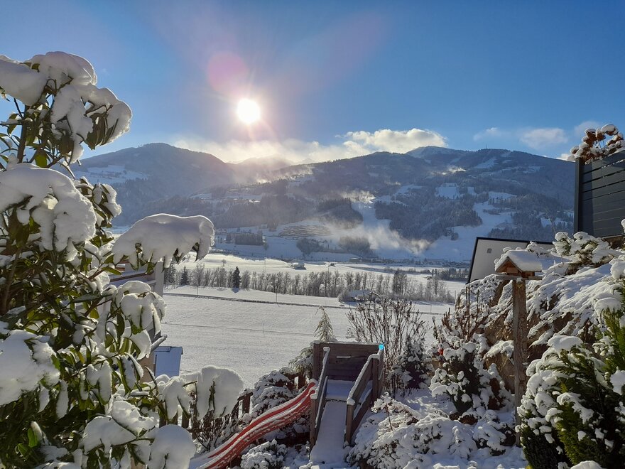 Zima w apartamencie Sunnseitn to zapierające dech w piersiach widoki na najpiękniejsze stoki Hauser Kaibling. Narciarze i snowboardziści dotrą do dolnej stacji wyciągu Hauser Kaibling – wschodniego pierwszego punktu wejścia do Schladminger 4-Berge-Skischaukel – w zaledwie 3 minuty samochodem. Alternatywnie, w waszym idyllicznym miejscu wakacyjnym Weißenbach znajduje się wiele zimowych szlaków do wędrówki i spacerów, które warto odkryć, a także możliwość zarezerwowania przejażdżki saniami ciągniętymi przez konie. Dla biegaczy narciarskich polecamy nordyczne centrum Ramsau am Dachstein, które znajduje się zaledwie 10 minut samochodem od naszego domu.