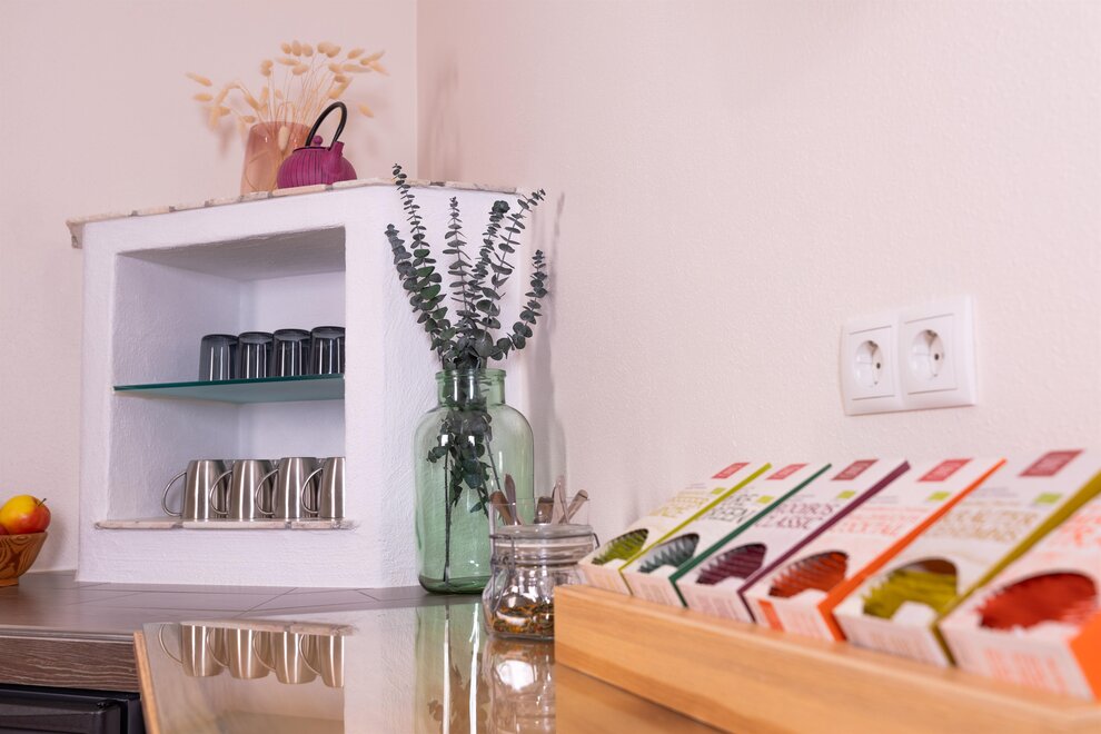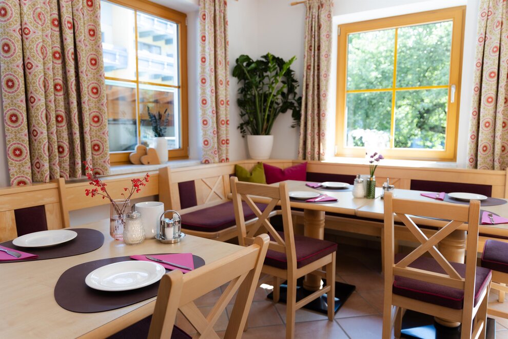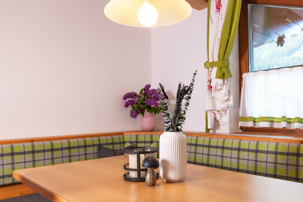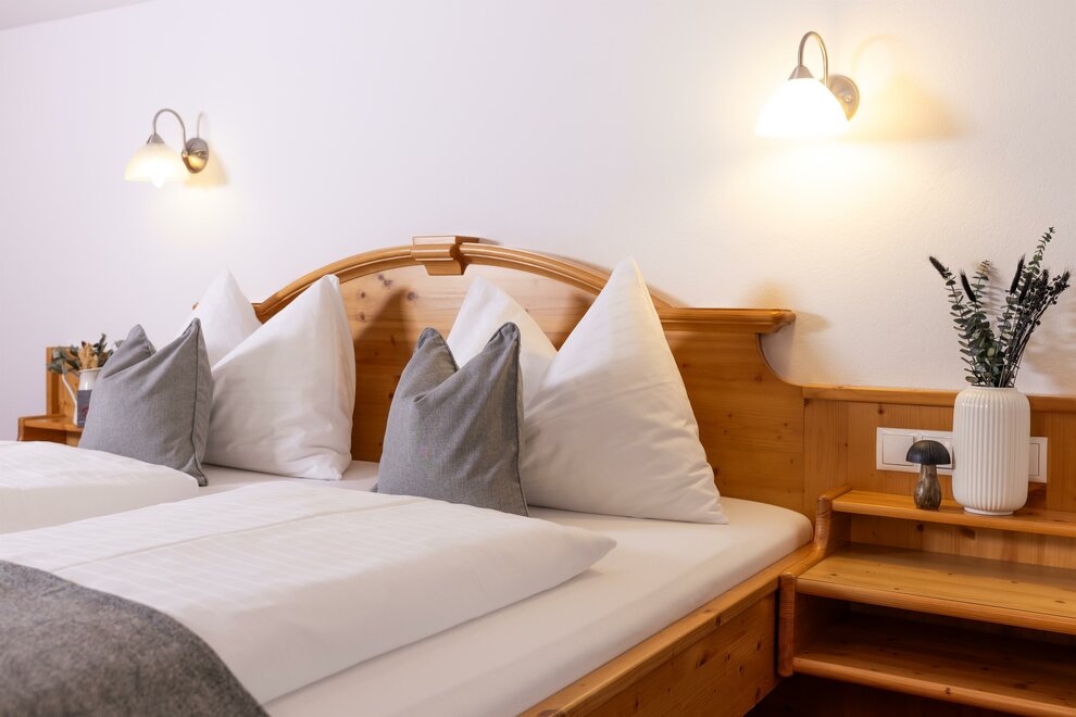 Podczas urządzania pokoi świadomie zadbano o włączenie materiałów z regionu. Meble wykonano z rodzimego drewna z modrzewia lub świerku. Szczególną cechą modrzewia jest to, że spowalnia on rytm serca, co sprawia, że Twoje serce oszczędza codziennie godzinę pracy i rozpoczynasz dzień w odprężeniu.