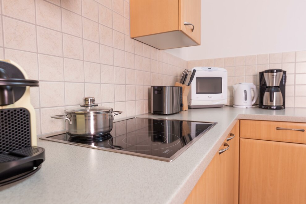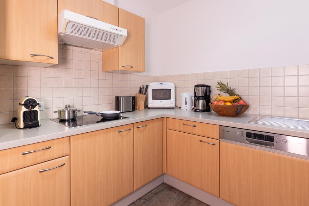 - W pełni wyposażona kuchnia z 4 płytami ceramicznymi, mikrofalówką, lodówką, zmywarką, czajnikiem, ekspresem do kawy Nespressa i ekspresem do kawy