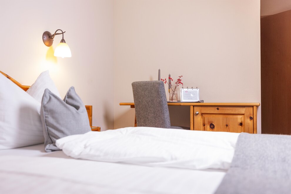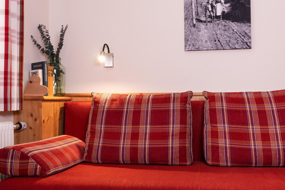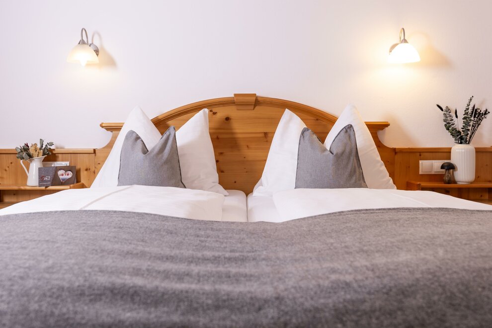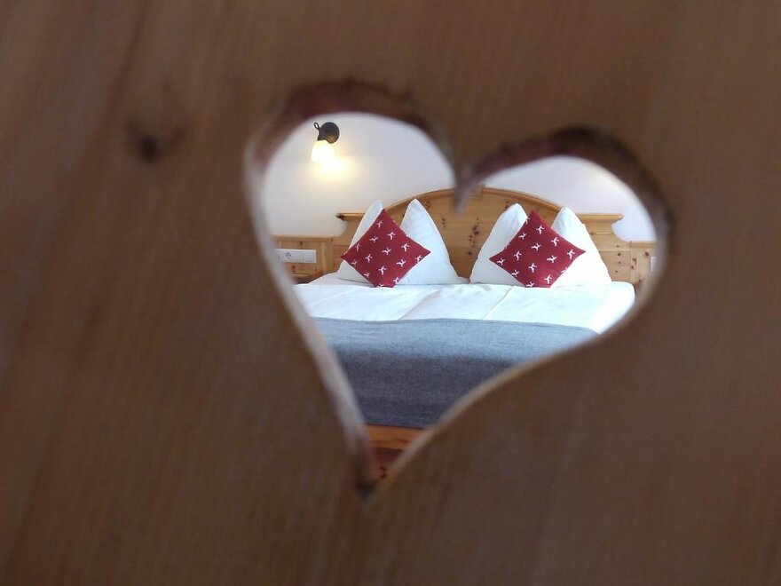 Podczas urządzania pokoi szczególnie zwrócono uwagę na integrację materiałów z regionu. Meble zostały wykonane z lokalnego drewna z modrzewia. Szczególną cechą modrzewia jest to, że spowalnia ona bicie serca, co sprawia, że Twoje serce codziennie oszczędza godzinę pracy i rozpoczynasz nowy dzień wypoczęty.