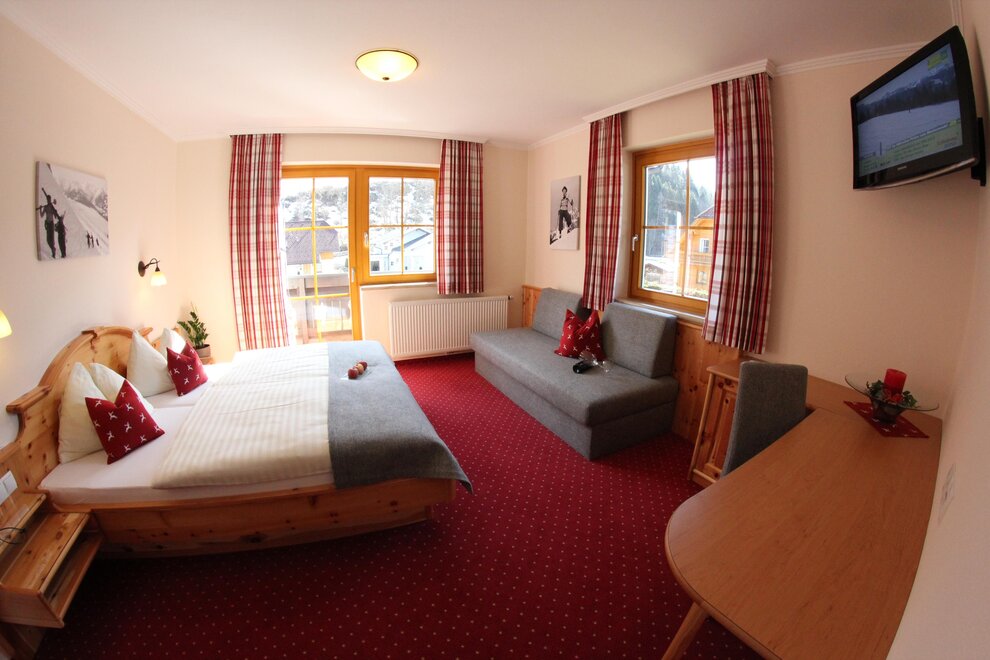 Podczas urządzania pokoi szczególnie zwrócono uwagę na wykorzystanie materiałów z regionu. Meble zostały wykonane z krajowego drewna świerkowego. Łazienki zostały zaprojektowane z płytkami w drewnianym wyglądzie oraz marmurem z regionu, a sofa z typowej tkaniny loden ze Schladmingu nadaje pokojowi przytulną atmosferę.Wyposażenie pokoi: