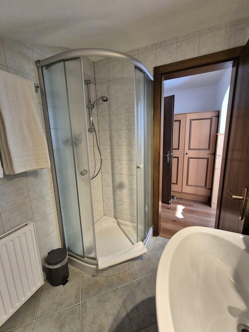Nasze pokoje 2-osobowe są wyposażone w prysznic, toaletę, balkon (1 pokój bez balkonu), telewizję SAT i telewizor typu flatscreen. Mamy łóżka typu boxspring o 2 różnych twardościach (90*210 cm). Łóżeczko dziecięce na życzenie!! Bezpłatne Wi-Fi!!