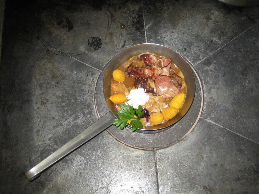 Tu gościnność i tradycja mają ogromne znaczenie i poczujesz to już przy swoim przyjeździe. Gospodarze dbają o Twoje samopoczucie, a potrawy przygotowywane są z lokalnych składników oraz mięsa wołowego z własnego gospodarstwa ekologicznego, aby zapewnić Ci przyjemność dla podniebienia. Dziczyzna na karcie pochodzi również z własnych polowań i przygotowywana jest z dużą miłością i pasją w kuchni.