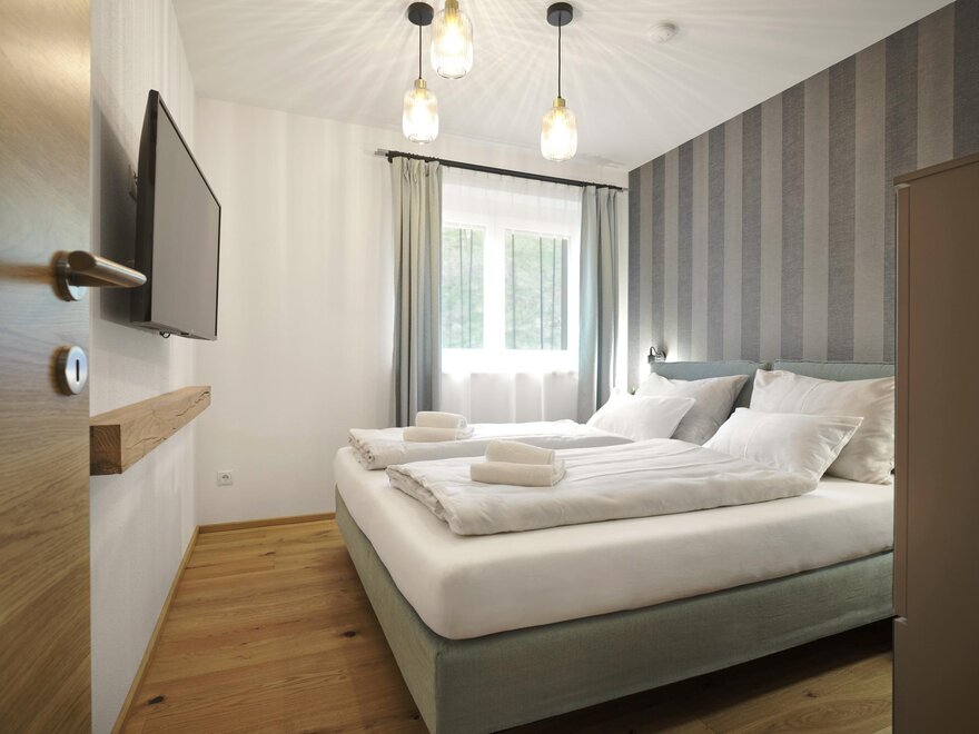 Mieszkanie posiada 2 sypialnie z wygodną kanapą podwójną oraz dwoma łóżkami podwójnymi. Łazienka jest wyposażona w prysznic. W pełni wyposażona kuchnia również nie pozostawia nic do życzenia i oferuje oprócz lodówki, zamrażarki, zmywarki i pralki również płytę indukcyjną, piekarnik oraz ekspres do kawy.