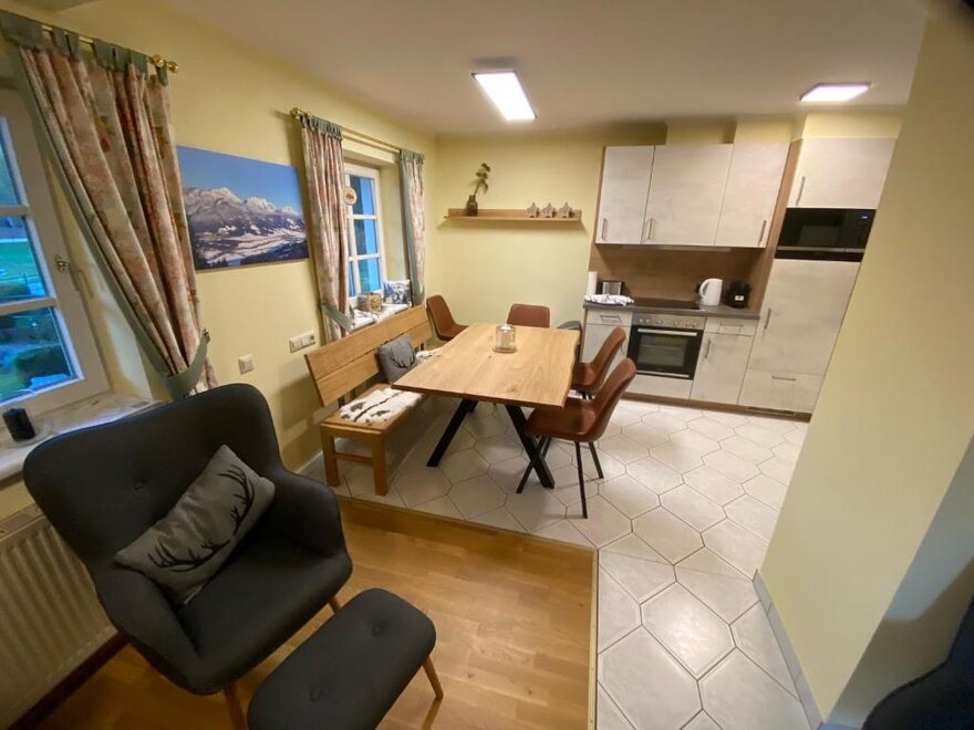 Ciesz się starannie urządzonym apartamentem dla 6 osób lub 4 dorosłych i 2 dzieci w sercu Oberhaus - tuż naprzeciw wjazdu do golfowego klubu Schladming/Dachstein.