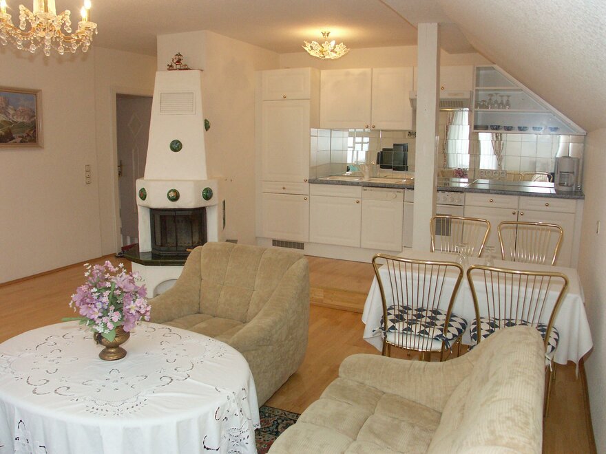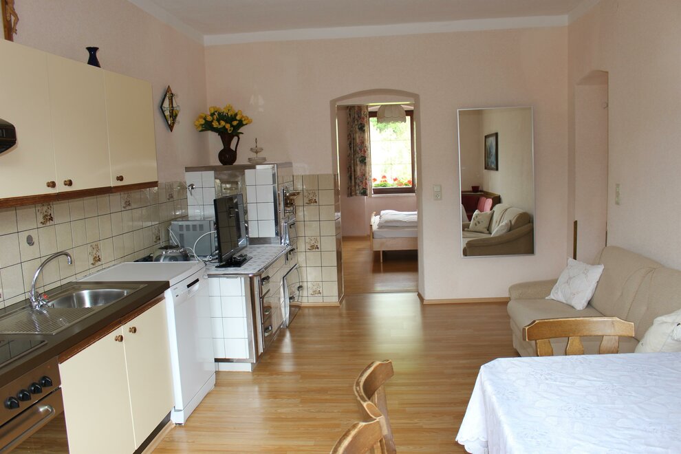 kuchenka elektryczna, pokój odizolowany od hałasu, bez dywanu, otwarta kuchnia, suszarka do włosów, ogrzewanie centralne, telewizja kablowa, bielizna stołowa i kuchenna, radio, zmywarka, lodówka, salon/sypialnia oddzielone, pokój/ apartament w spokojnej okolicy, możliwość przygotowywania posiłków, ekspres do kawy, pościel do dyspozycji, telewizor, oddzielna sypialnia: 2, ogrzewanie, Größe m²: 60, zlew do mycia naczyń, lodówka do dyspozycji, naczynia kuchenne do dyspozycji gości, zwierzeta domowe za porozumieniem, piekarnik, pokój dla niepalących, podstawowe umeblowanie, czajnik bezprzewodowy, WiFi, ogród, pojemnik do zamrażania, ręczniki do dyspozycji
