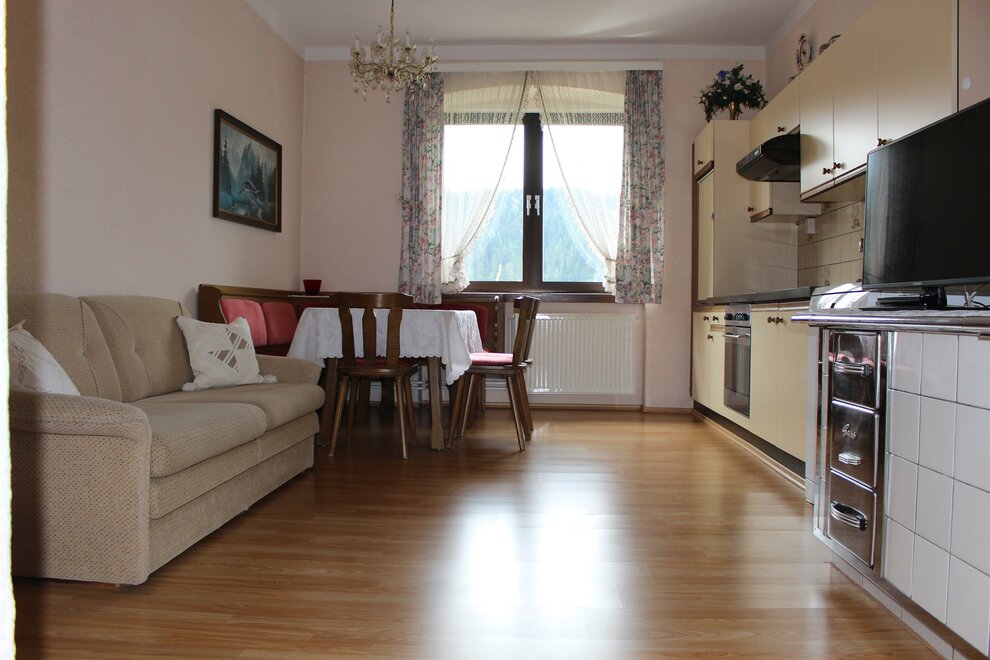 U nas spędzicie Państwo wakacje w przestronnych i komfortowych apartamentach, które pomieszczą do 5 osób, co czyni je idealnymi dla całej rodziny. Nasze apartamenty są wyposażone w 2 oddzielne sypialnie, wannę lub prysznic/WC w „Apartamencie B” oraz kabiny prysznicowe w sypialniach w „Apartamencie C”, kuchnię, telewizję satelitarną, Wi-Fi, salon oraz balkon z pięknym widokiem na okoliczne góry Ramsau. Dla naszych gości dostępny jest również prywatny parking dla samochodów.
