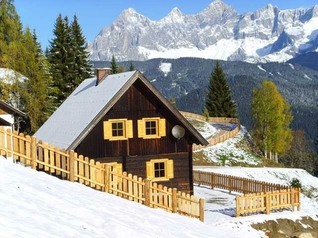 Przytulna chata górska w spokojnej lokalizacji na skraju lasu, z pięknym widokiem na masyw Dachstein.