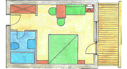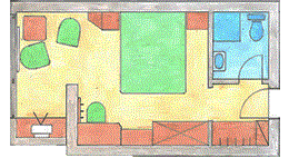 Ładne jednoosobowe pokoje (15 m²) dla niepalących bez balkonu, w tym prysznic, WC, biurko, telefon, telewizja satelitarna, sejf, suszarka do włosów, szlafroki
