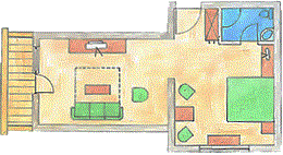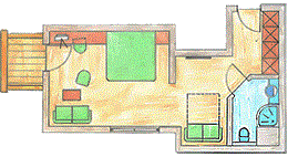 Ładne mieszkanie hotelowe / Pokój rodzinny Typ D (ok. 31-38 m²) dla niepalących oddzielna część dzienna/sypialna lub 2 oddzielne sypialnie, w tym łazienka/prysznic, (balkon), WC, telefon, TV satelitarna, bezprzewodowy internet, biurko, sejf, suszarka do włosów, szlafrok. (2-4 osoby)