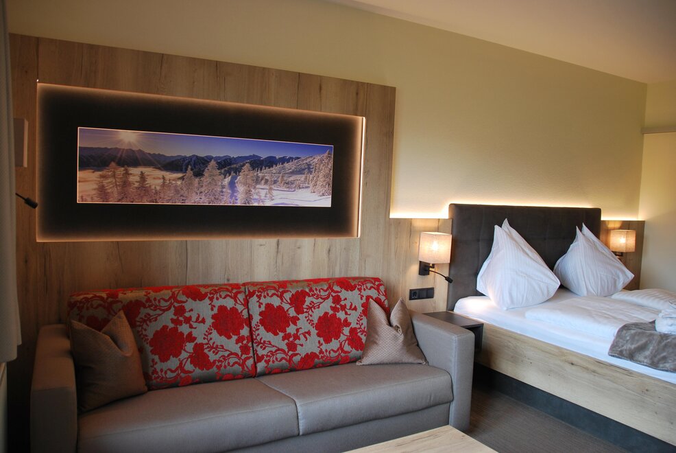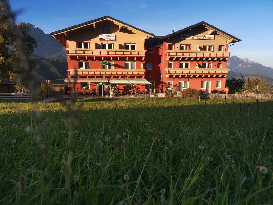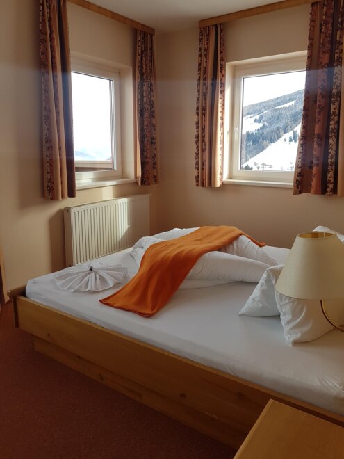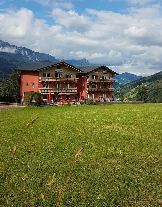 Halfboard includes: • balanced breakfast buffet with vital-corner • 5-course dinner menu (different main courses, vegetarian menu) Equipment/Services included in winter: • full time á-la Carte-restaurant • spa area with bio-sauna, steambath, relax- and outdoor area and infrared cabin (Physio-therm) • direct located at the ski slope • heated ski room • elevator to all floors • sun terrace • marvellous view to the Dachstein mountain and over our Enns valley • near the centre: 100 m to the walking bus stop, shopping facilities • entertainmentcenter „Rohrmooser-Erlebniswelt“ • parking area directly at the hotel • airport/railway-transfer upon request Equipment/Services included in summer: • á-la Carte-restaurant • spa area with bio-sauna, steambath, relax- and outdoor area and infrared cabin (Physio-therm) • summercard www.sommercard.info • bicycle cellar • elevator to all floors • sun terrace • marvellous view to the Dachstein mountain and over our Enns valley • great hiking tours starting directly from the house • nearly in the centre: 100 m to the walking bus stop, shopping facilities • entertainmentcenter „Rohrmooser-Erlebniswelt“ • parking area directly at the hotel • airport/railway-transfer upon request