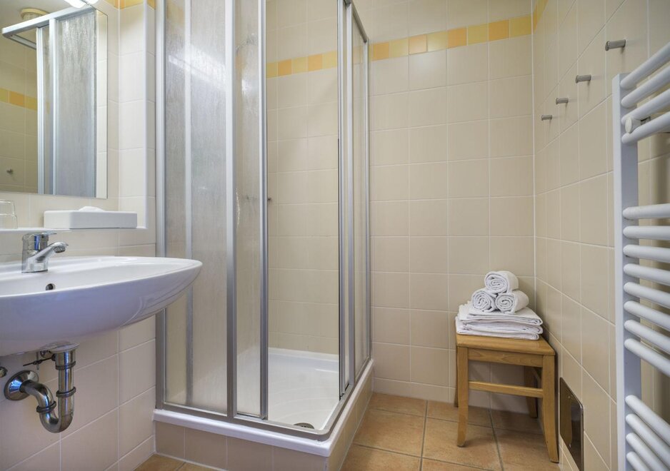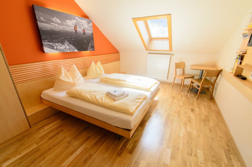 Jasne i przytulne pokoje z elastycznymi systemami łóżek (podwójne, pojedyncze, sofa i piętrowe), funkcjonalne wyposażenie z naturalnych i regionalnych surowców. Łazienka z prysznicem/WC