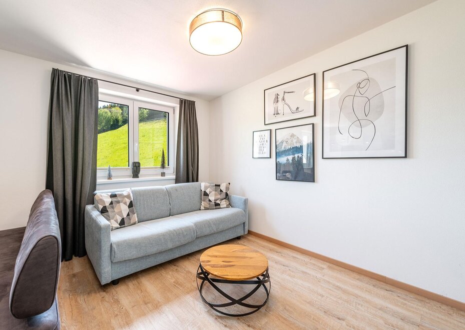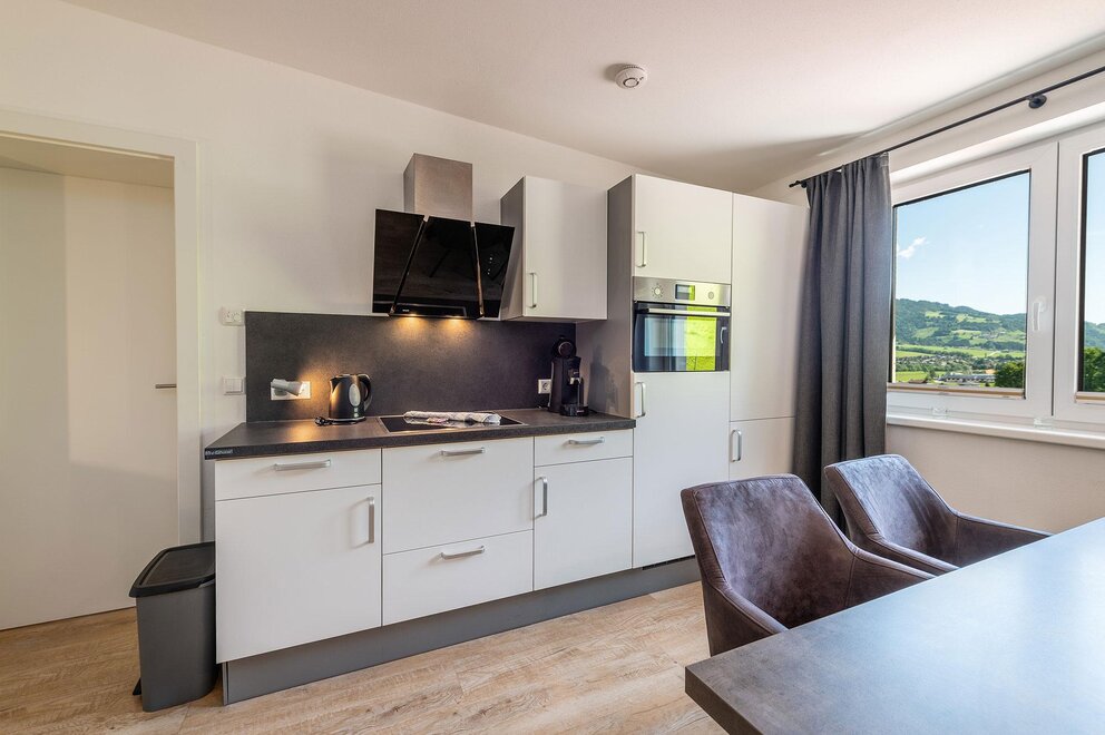 Nasze Mountain Love Appartement II również oferuje duży pokój dzienny/jadalnię z w pełni wyposażoną kuchnią, łazienkę z prysznicem oraz osobną toaletę. Apartament dysponuje dwoma oddzielnymi sypialniami z podwójnym łóżkiem. Dla Twojego niemowlęcia lub małego dziecka chętnie i tutaj zapewnimy łóżeczko bezpłatnie!