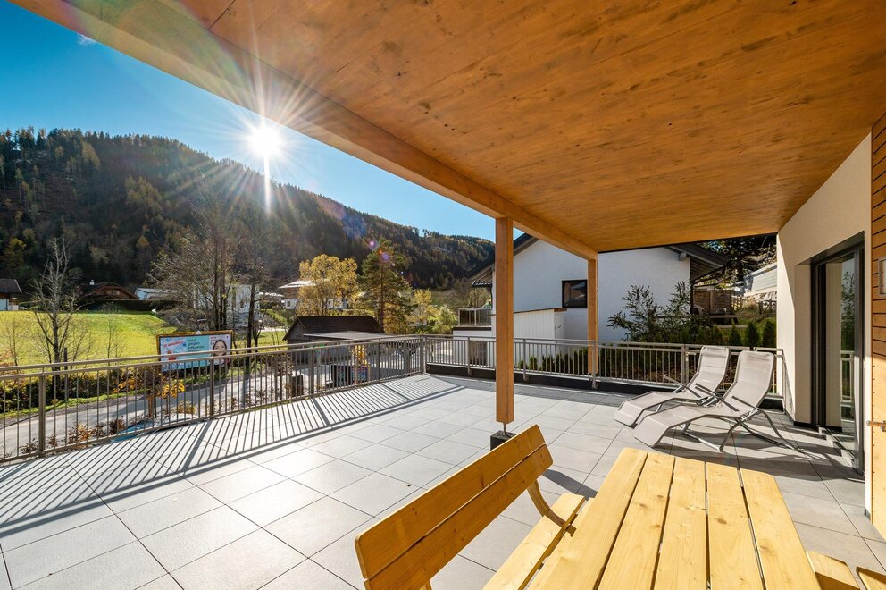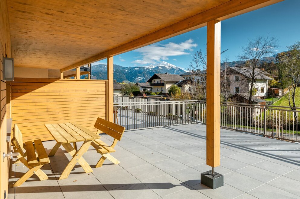 Duży taras to idealne miejsce, aby cieszyć się widokiem na otaczające góry.