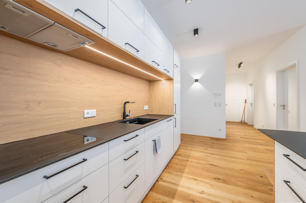 Obok w pełni wyposażonej kuchni, w tym nowym apartamencie wakacyjnym znajdują się 2 sypialnie z podwójnymi łóżkami. Dodatkowo w salonie znajduje się sofa, na której mogą spać 2 dodatkowe osoby.