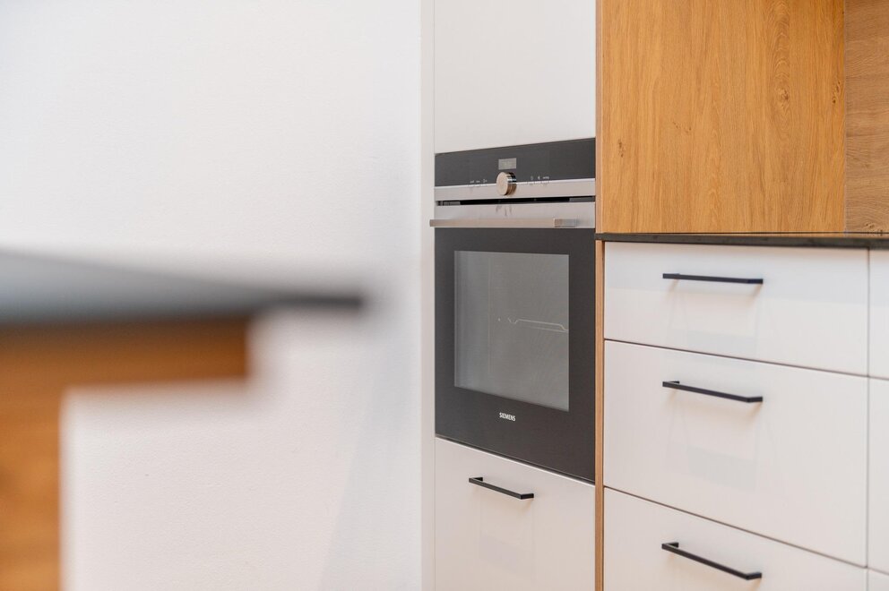 Obok w pełni wyposażonej kuchni w tym nowym apartamencie znajdują się 2 sypialnie, z każdą po podwójnym łóżku. Dodatkowo w salonie znajduje się sofa rozkładana dla 2 kolejnych osób.