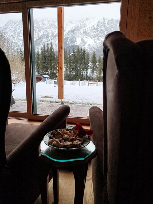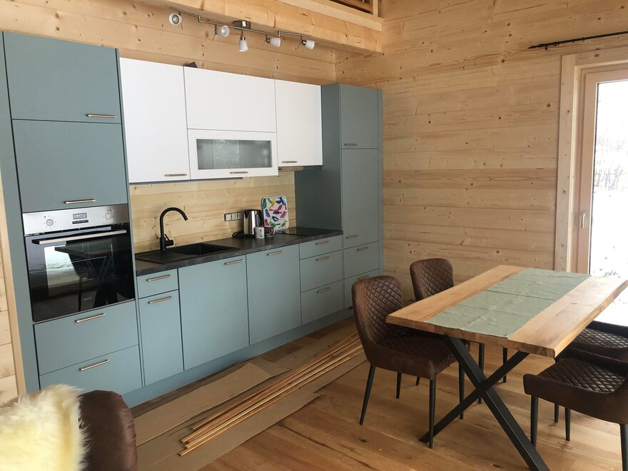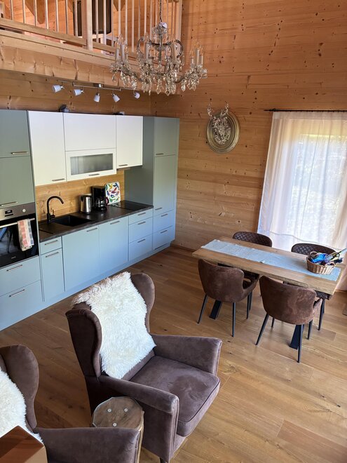Z kuchni dziennej macie wspaniały widok na góry. Usiądźcie w jednym z foteli i zrelaksujcie się. Kuchnia jest w pełni wyposażona, znajduje się w niej piekarnik, mikrofalówka, ekspres do kawy, czajnik oraz oczywiście zmywarka i to, co jeszcze potrzebne.