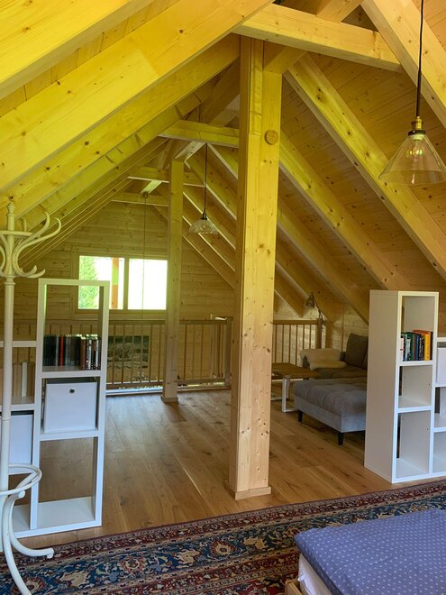 Uwielbiamy nasz drewniany dom, który z wielką miłością i własnym trudem został zbudowany w 2022 roku z drewna oraz z naturalnych materiałów budowlanych, jak tylko było to możliwe.
