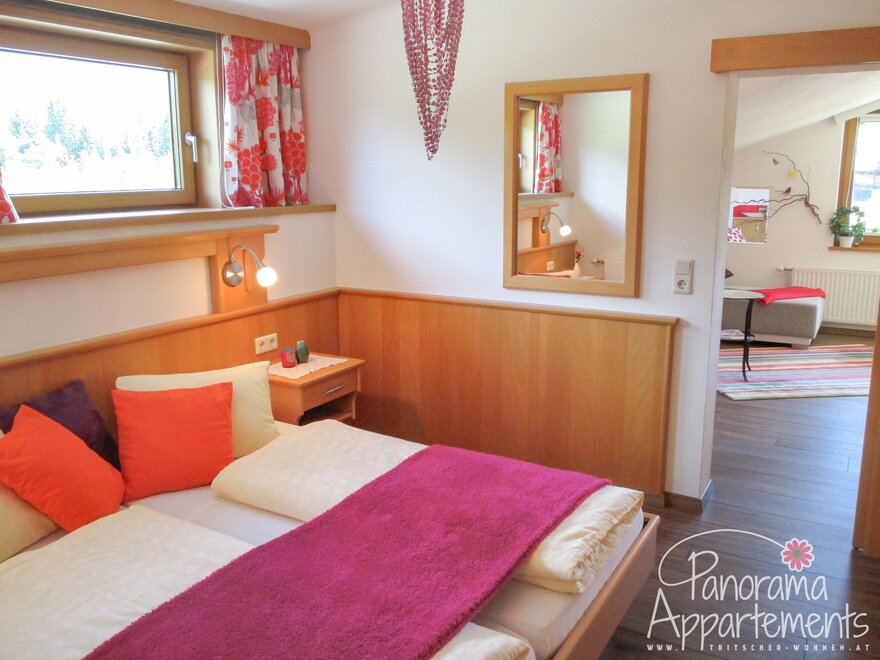 - jasna sypialnia z kącikiem do czytania i widokiem na Schladminger Tauern, łazienka z prysznicem i WC,
