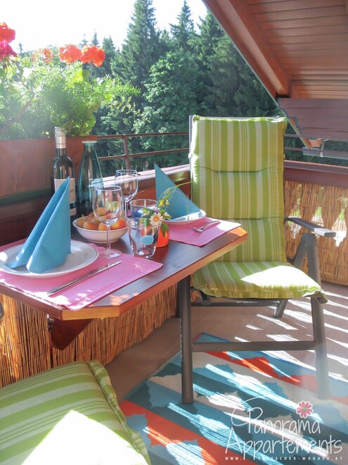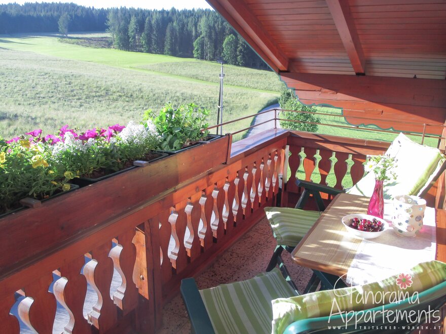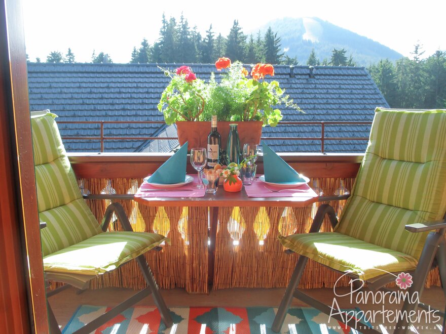 - balkon z popołudniowym słońcem i widokiem na nasz Rittisberg