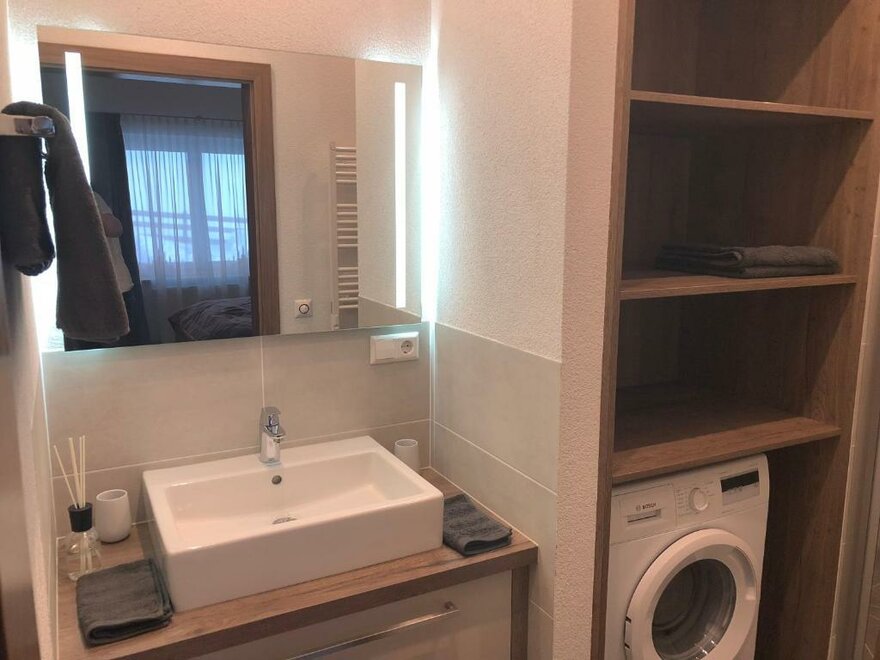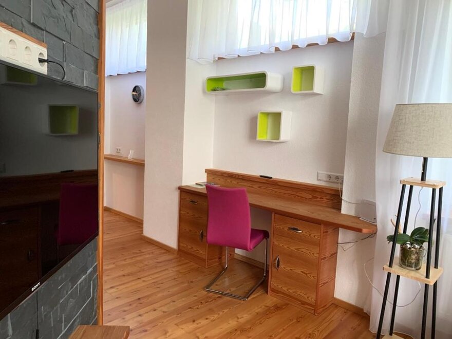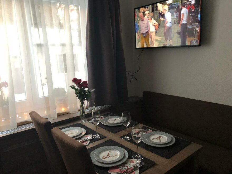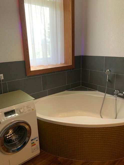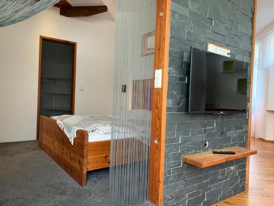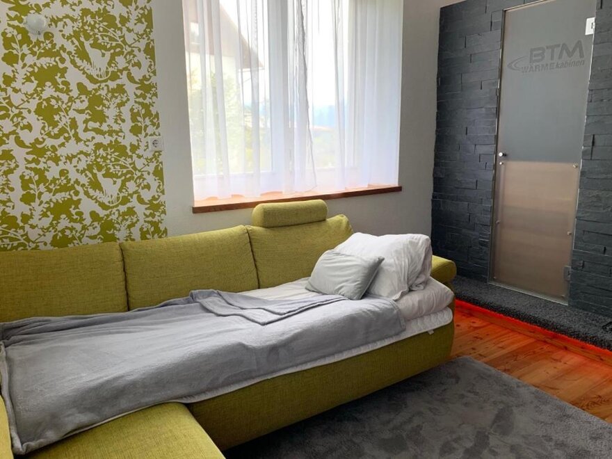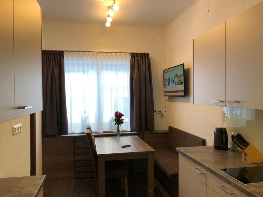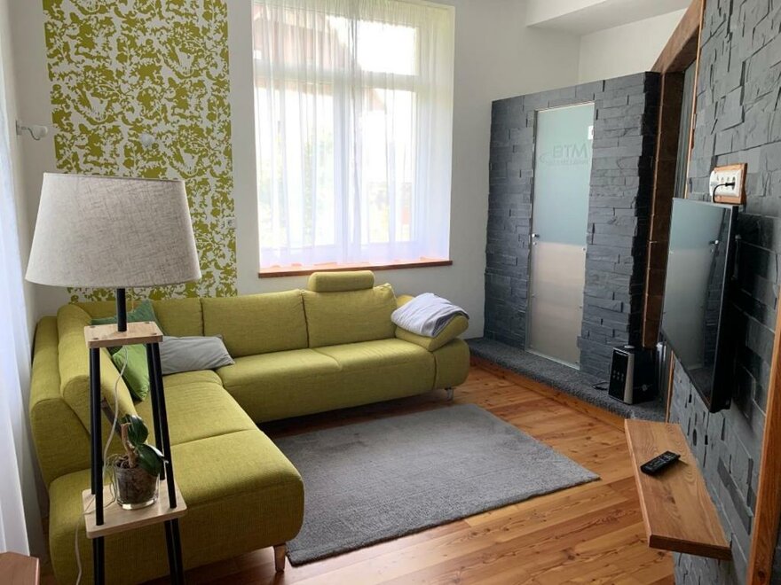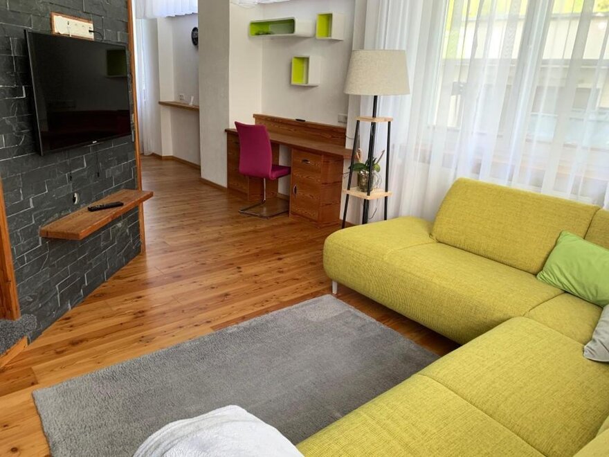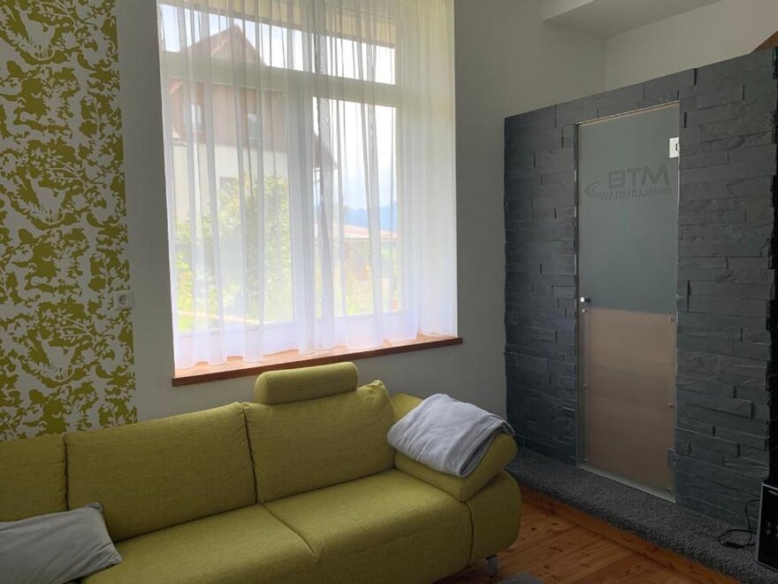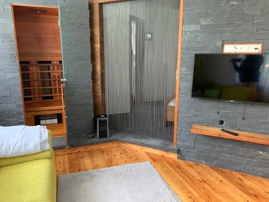 Ładne romantyczne mieszkanie z sauną na podczerwień. 1 sypialnia, 1 kącik z dodatkowym miejscem do spania. W pełni wyposażona kuchnia z zmywarką, piekarnikiem i mikrofalówką. Bardzo ładnie i przytulnie urządzone. Duża łazienka z wanną i prysznicem. Mieszkanie jest wyposażone w pralkę.