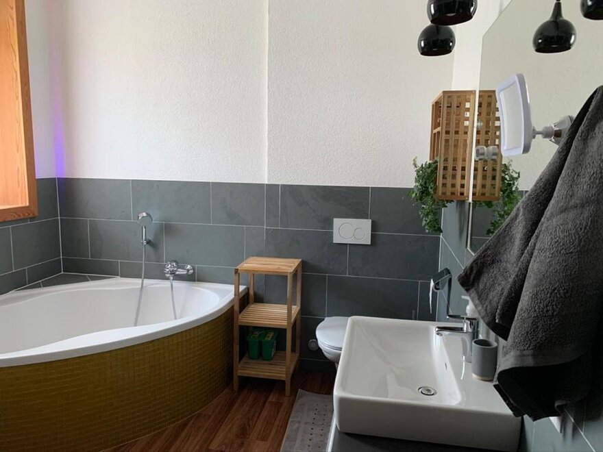 łazienka, prysznic, WC, oddzielne WC, wanna, prysznic, prysznic lub wanna, ilość toalet: 2, łazienka,WC, WC, ilość łazienek: 1, umywalka, bieżąca woda ciepła/zimna