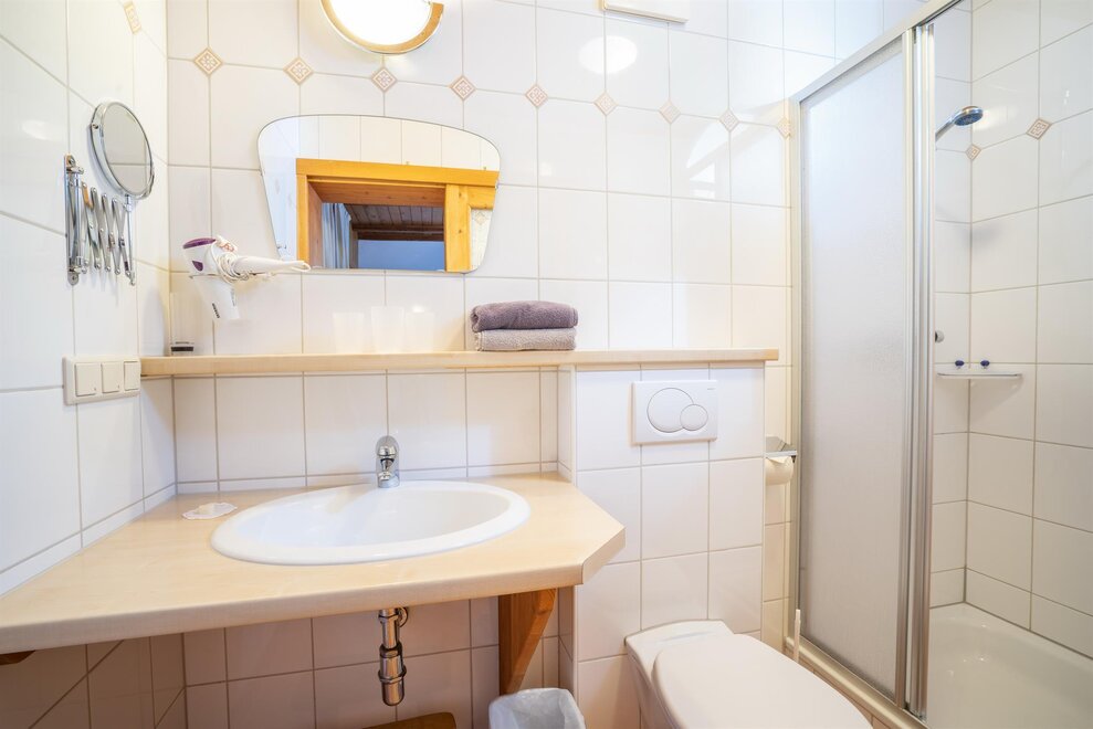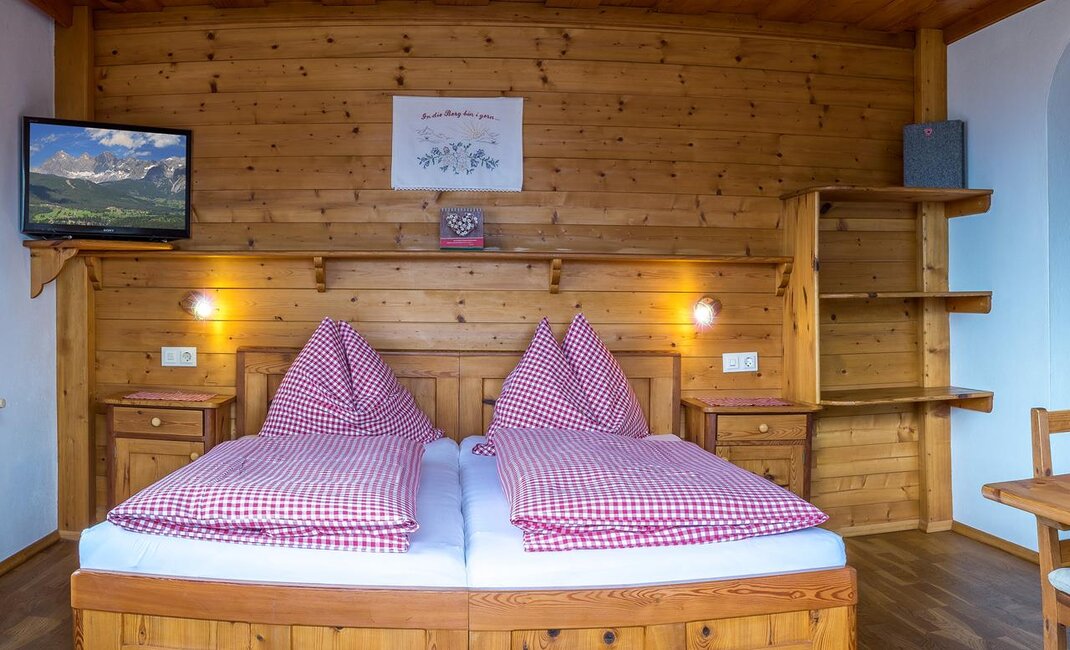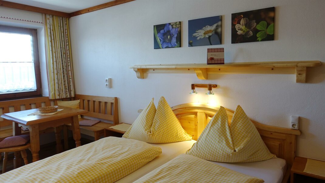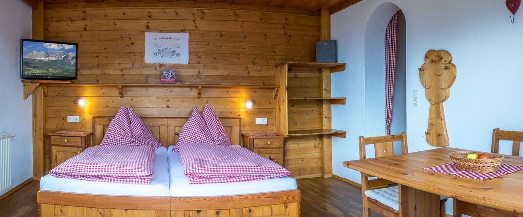 Nasze pokoje, wyposażone w dużą ilość litego drewna, zapraszają do relaksu. Wszystkie nasze pokoje dwuosobowe dysponują prysznicem, toaletą, balkonem, radiem i telewizorem. Oprócz pokoi dwuosobowych istnieje możliwość rezerwacji pokoi wieloosobowych lub pokoju rodzinnego z oddzielnymi sypialniami i przytulnym kącikiem do siedzenia. Oferujemy także obfite śniadanie w formie bufetu, podczas którego można spróbować naszych domowych produktów.