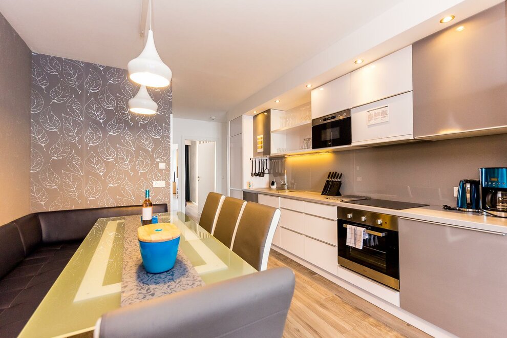 oddzielna sypialnia: 2, salon/sypialnia oddzielone, ekspres do kawy, czajnik bezprzewodowy, kuchenka elektryczna, pościel do dyspozycji, naczynia kuchenne do dyspozycji gości, ręczniki do dyspozycji, aneks kuchenny, przyłącze internetowe, lodówka, pokój dla niepalących, sauna, pojemnik do zamrażania, zmywarka, telewizja satelitarna, suszarka do włosów, taras, nie przyjmujemy zwierząt, kuchenka mikrofalowa