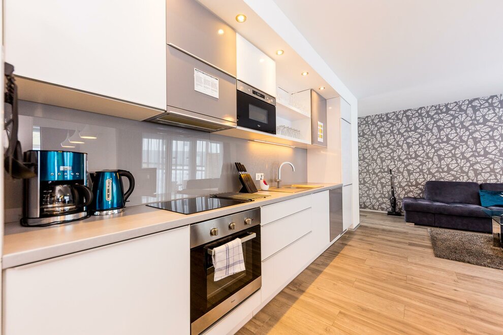 ekspres do kawy, naczynia kuchenne, kuchnia, taras, naczynia kuchenne do dyspozycji gości, czajnik bezprzewodowy, pokój odnowiony, telewizor, kuchenka mikrofalowa, ogród, ogrzewanie, suszarka do włosów, sejf, zmywarka, salon/sypiania połączone, sauna, nowoczesne umeblowanie, meble balkonowe, wentylator, WiFi, balkon, nie przyjmujemy zwierząt, kuchenka elektryczna, pościel do dyspozycji, ręczniki do dyspozycji, lodówka, przyłącze internetowe, pojemnik do zamrażania, lodówka do dyspozycji, pokój dla niepalących, telewizja satelitarna