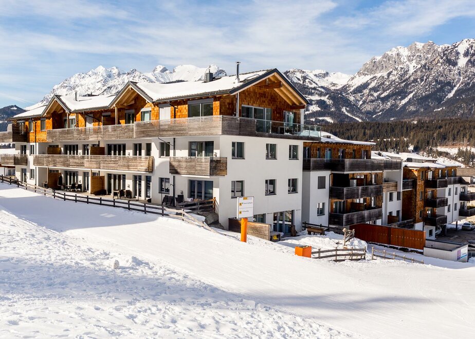 Apartamenty bezpośrednio przy trasach narciarskich i wyciągach w austriackim regionie narciarskim Schladming-Dachstein.