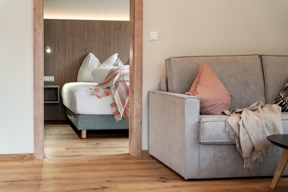 około 50 m² komfortowego i praktycznego wyposażenia w wiejskim stylu gwarantuje komfort i radość z wakacji. 2 sypialnie, pokój dzienny z nowoczesnym aneksem kuchennym, zmywarka do naczyń, 2 telewizory kablowe, słoneczny taras, miejsca parkingowe itp. Ciesz się wszystkimi zaletami hotelu, takimi jak nasza przestronna oaza relaksu Bären SPA, strefa saun, basen hotelowy, duża łąka do opalania, strefy wypoczynku, program animacyjny, dodatki Bären i wszelkie udogodnienia.