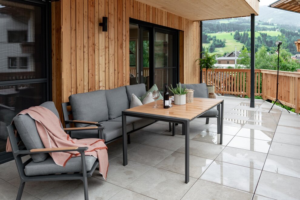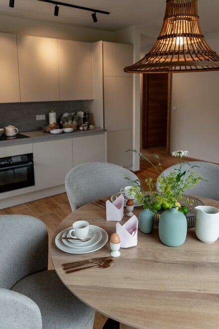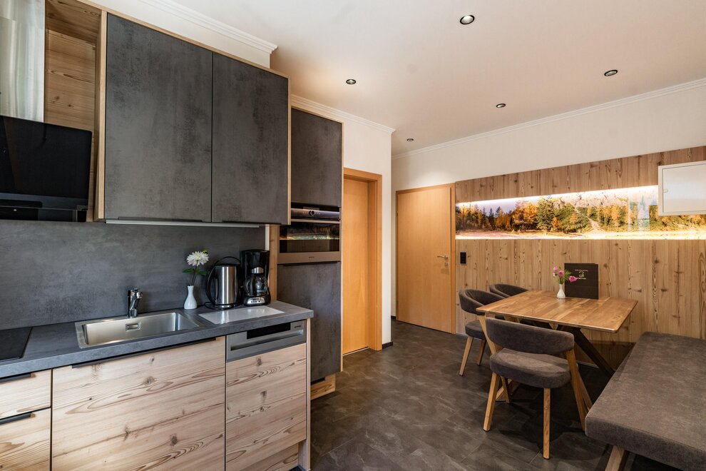 Nasze mieszkanie "Romantik Planai" oferuje na 63 m² miejsce dla 2 do 5 osób. Mieszkanie dysponuje w pełni wyposażoną kuchnią, przestrzenią dzienną, 1 podwójną sypialnią oraz 1 sypialnią z trzema łóżkami, a także osobną łazienką i WC. Taras, telewizory z płaskim ekranem, bezpłatne Wi-Fi, sejf