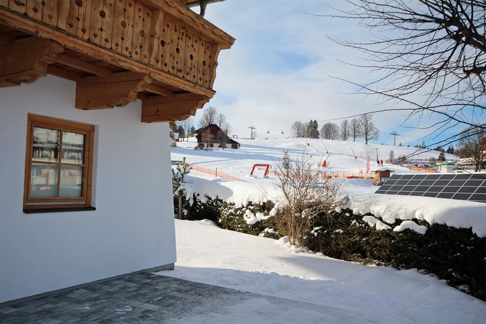 Naprzeciwko domu znajduje się przedszkole narciarskie.