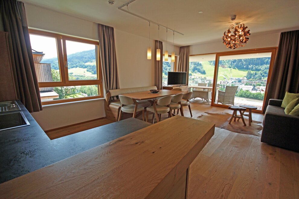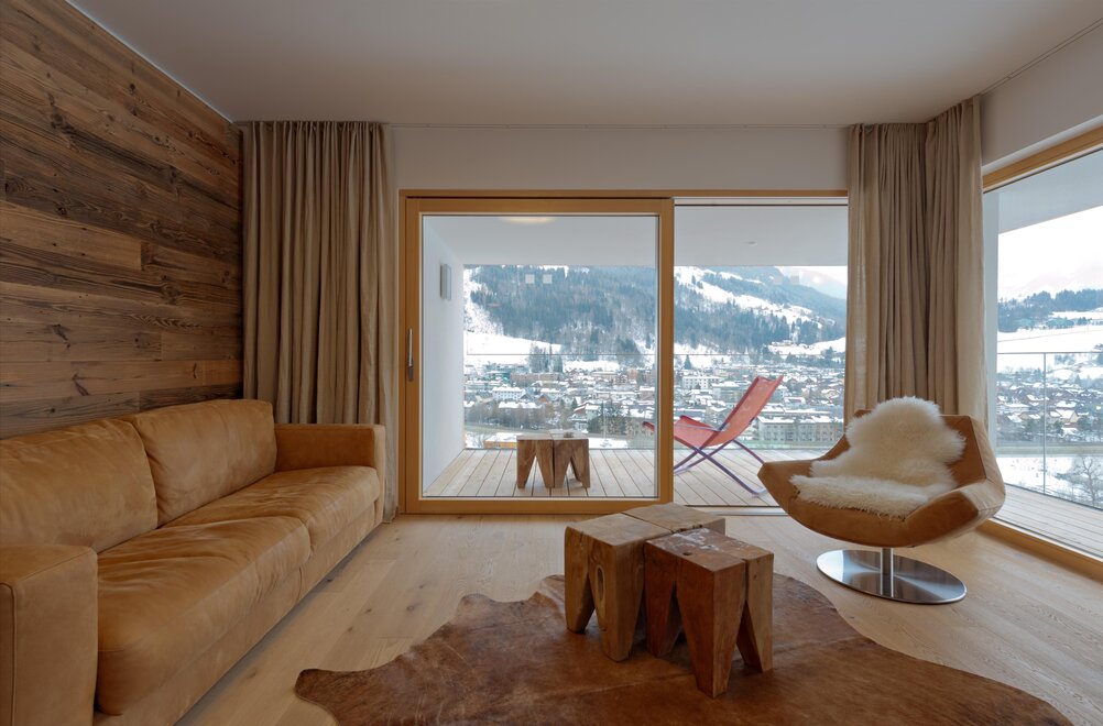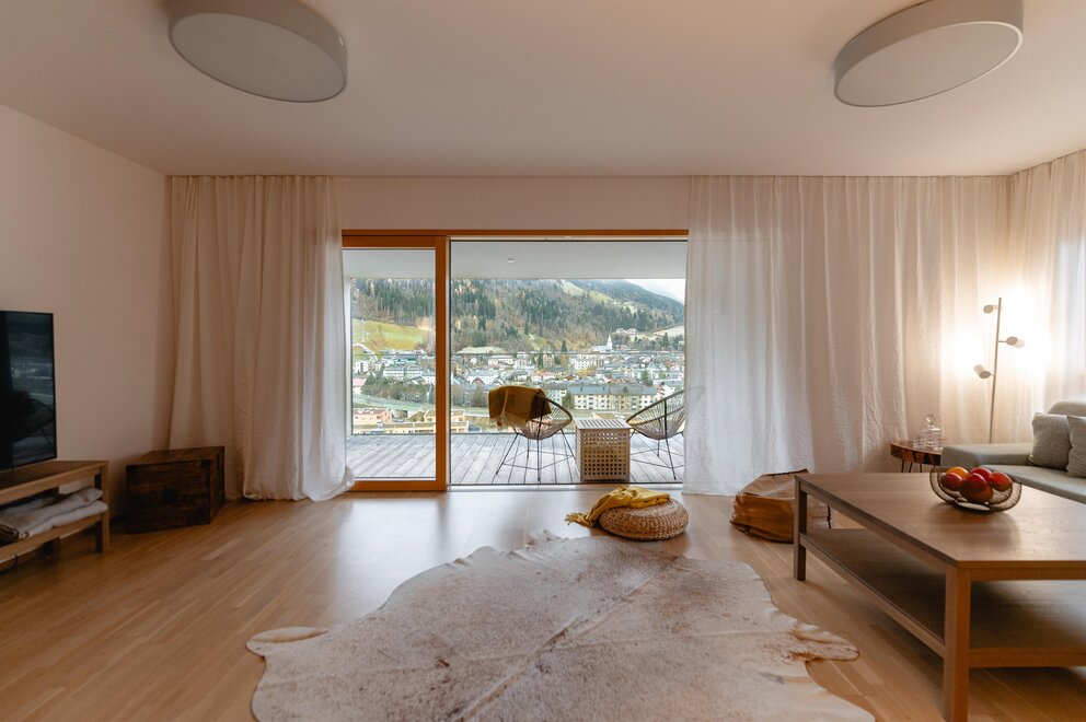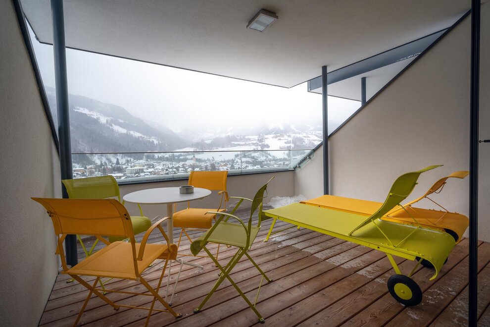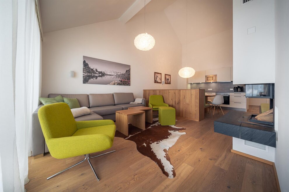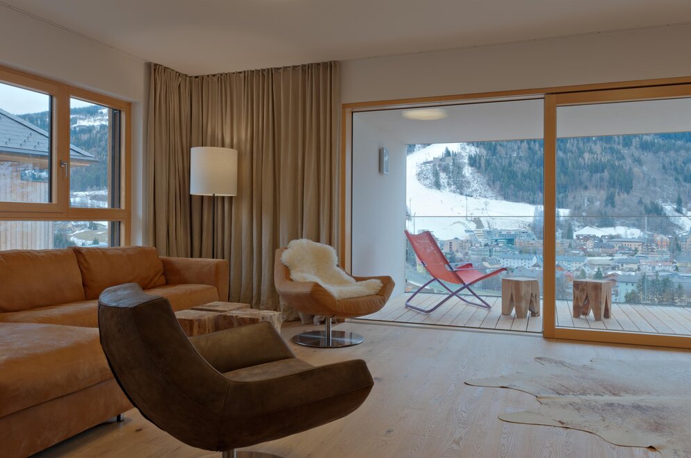 Każdy apartament wyposażony jest w południowo skierowaną lodżę lub taras z ogrodem, dzięki czemu możesz uchwycić wspaniałe alpejskie krajobrazy i swój nastrój o każdej porze roku.