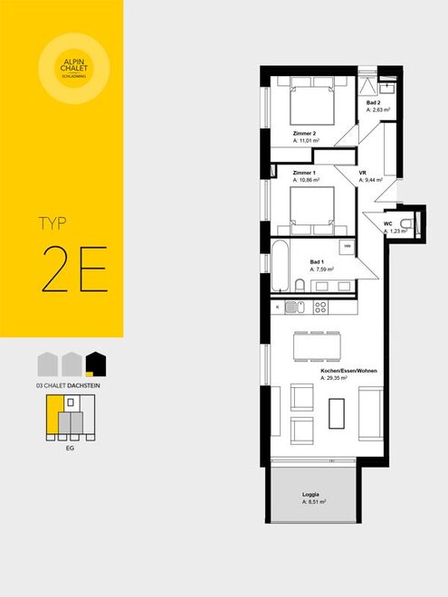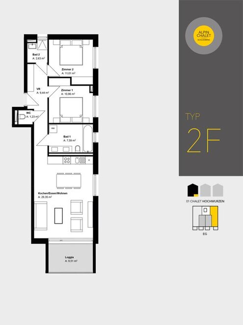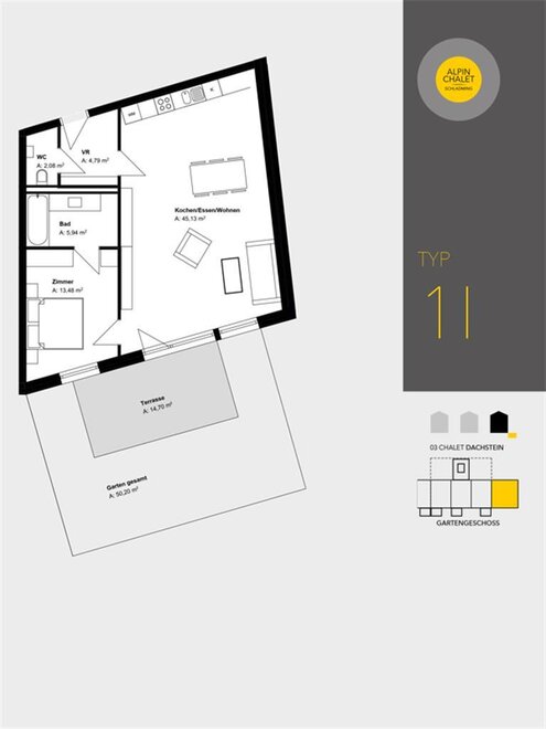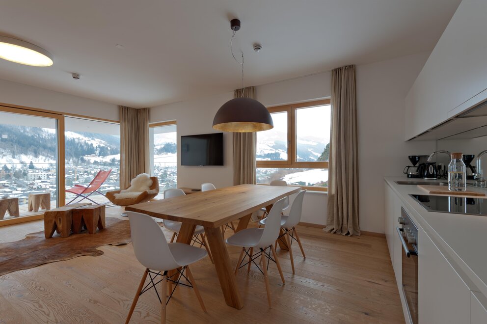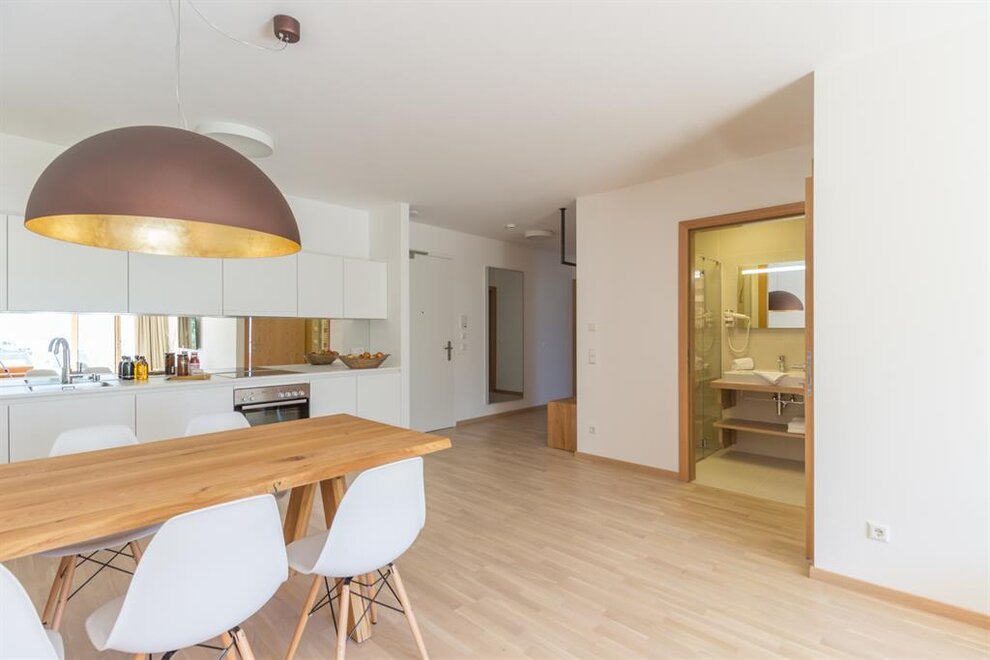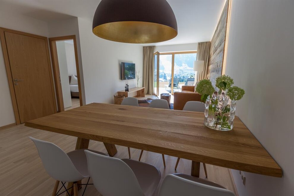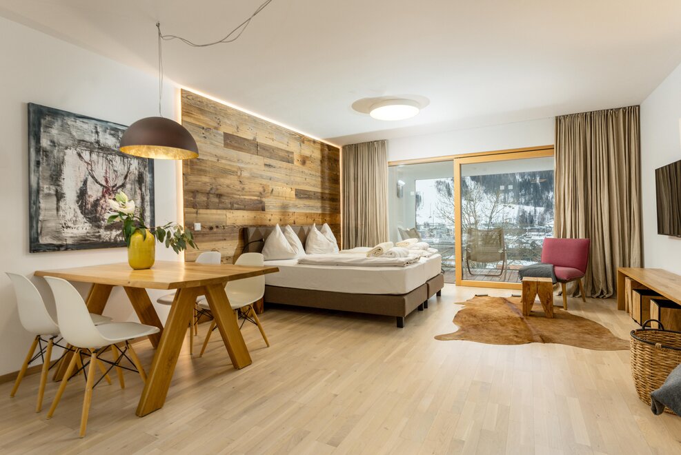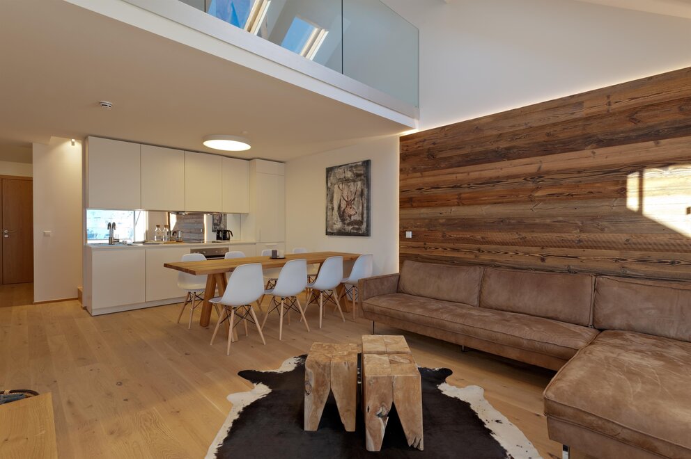 Każdy apartament wyposażony jest w południowo skierowaną lodżę lub taras z ogrodem, dzięki czemu możesz uchwycić wspaniałe alpejskie krajobrazy i swój nastrój o każdej porze roku.