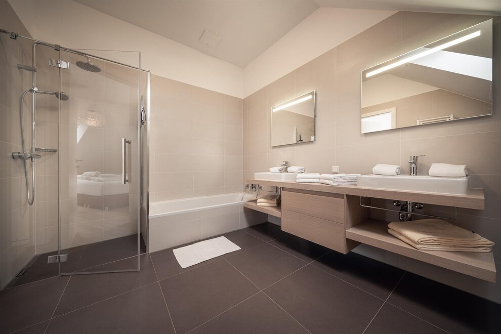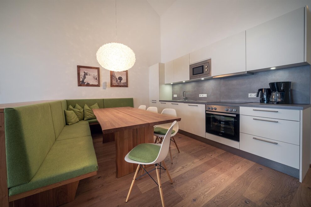 3 połączone ze sobą obiekty, 38 serwisowanych apartamentów, od 40 m² studiów, apartamentów z jedną, dwiema lub trzema sypialniami, aż po 130 m² penthouse'y z wspaniałym widokiem i wysokim standardem! Wysokiej jakości wyposażenie apartamentów z krajowych materiałów, takich jak drewno, kamień i szkło, tworzy nowoczesną atmosferę z dużą ilością światła i widoku - symbioza czystego poczucia życia i przestrzeni mocy na słońcu. W pełni wyposażone kuchnie designerskie, przestronne salony w niektórych przypadkach z kominkiem, nowoczesne i stylowe meble, bezpłatne Wi-Fi, telewizja kablowa w każdej sypialni i salonie oraz nowoczesne, jasne łazienki nie pozostawiają żadnych życzeń dla gościa ceniącego swoją prywatną wolność.