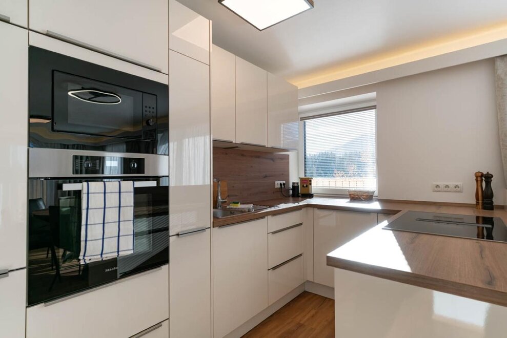 ekspres do kawy, toster, przedpokój, pościel do dyspozycji, salon/sypialnia oddzielone, podstawy (Ręczniki, pościel, mydło i papier toaletowy), zmywarka, naczynia kuchenne do dyspozycji gości, telewizja kablowa, czujnik dymu, salonik, zlew do mycia naczyń, narciarnia, telewizor, lodówka, otwarta kuchnia, kuchenka elektryczna, WiFi, kuchenka mikrofalowa, kuchnia