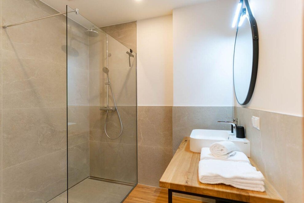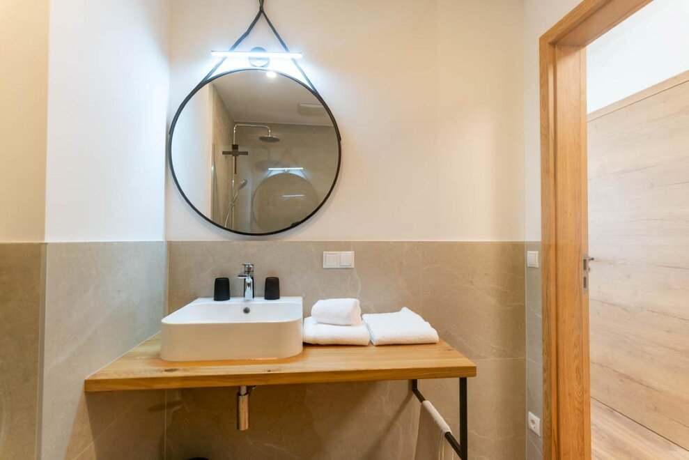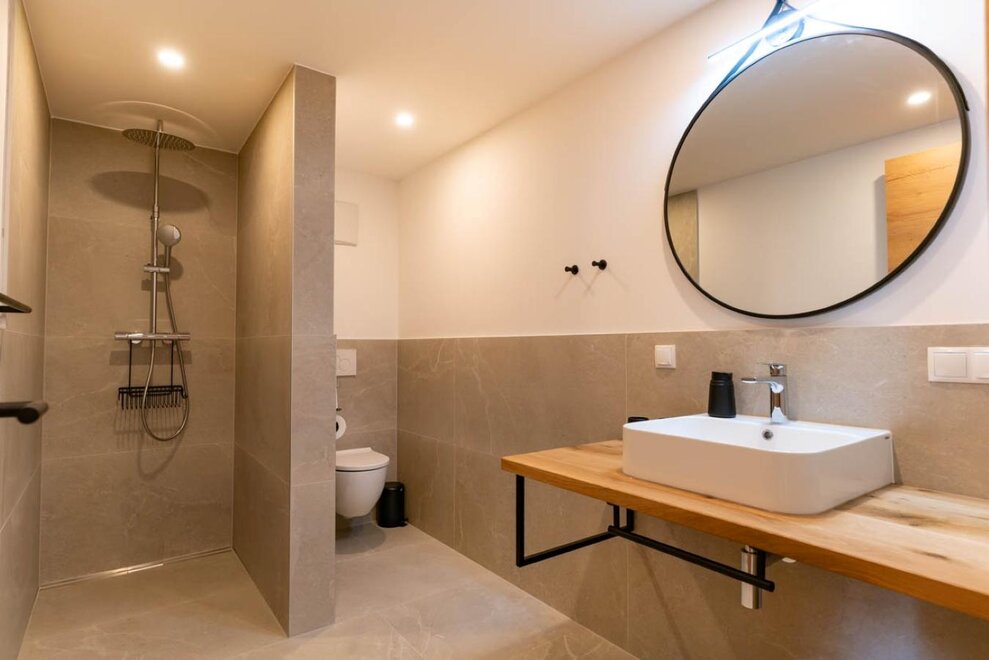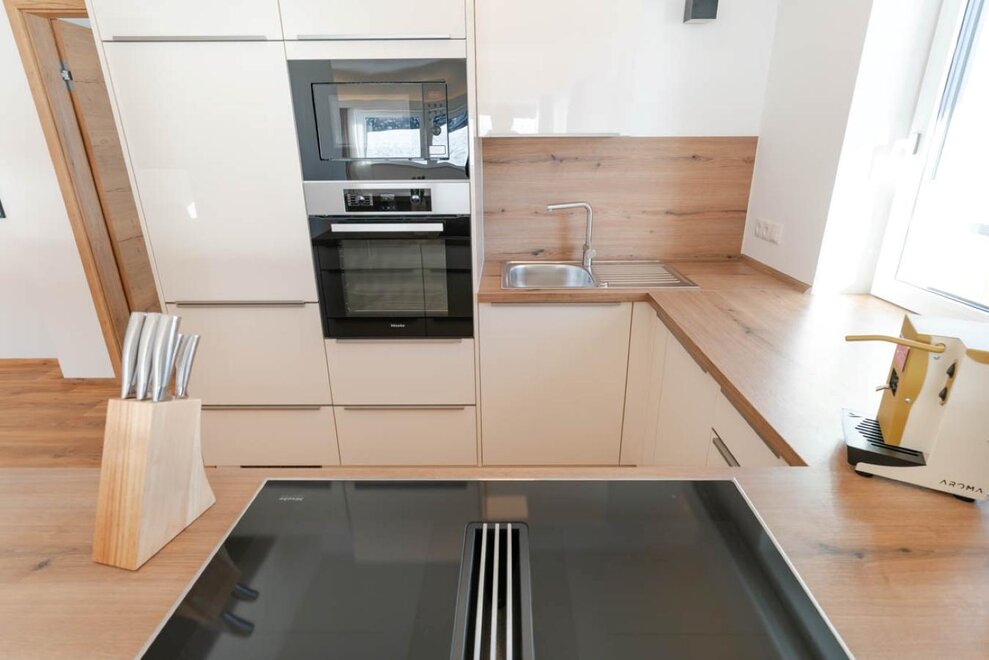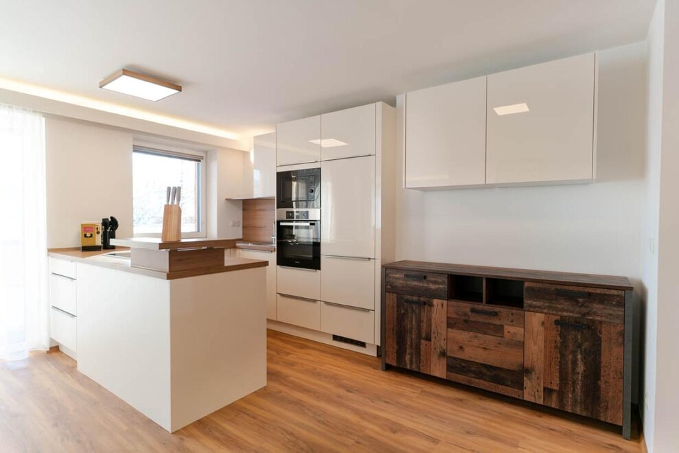 85m² / Salon / 2 sypialnie / 1 łazienka z prysznicem / 1 łazienka z wanną / WC / Kuchnia z urządzeniami Miele: zmywarka, mikrofalówka, piekarnik, płyta grzewcza, ekspres do kawy / Smart TV / W-LAN / pościel / ręczniki / Taras 93m²