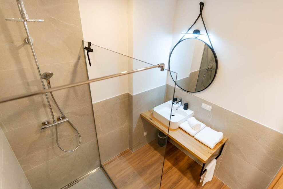 oddzielne WC, łazienka, podwójna umywalka, prysznic