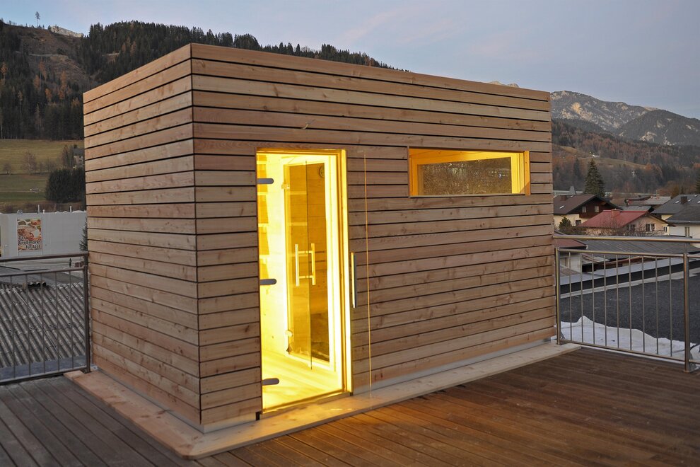 Rodzaj: panoramiczna sauna z ogromnym tarasem słonecznym, Wi-Fi