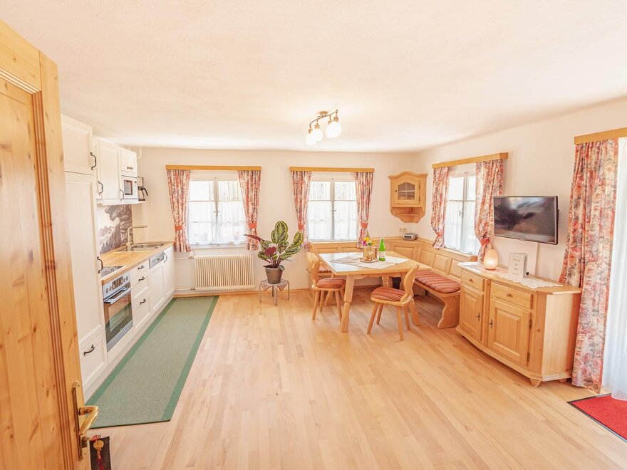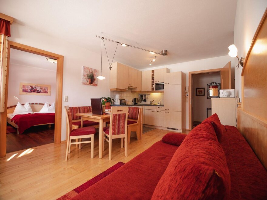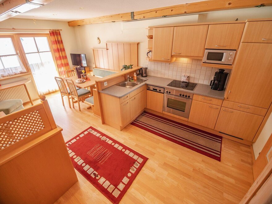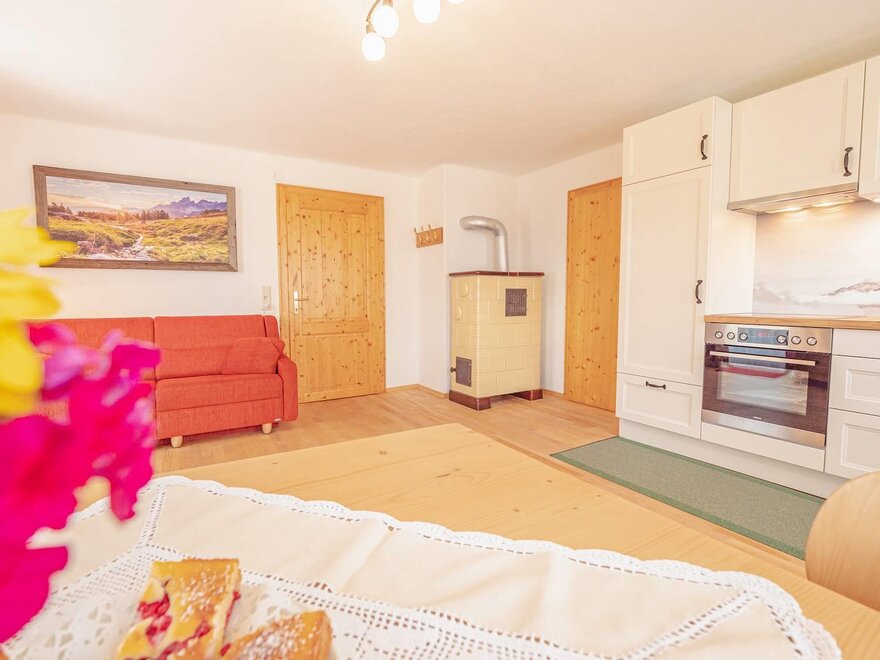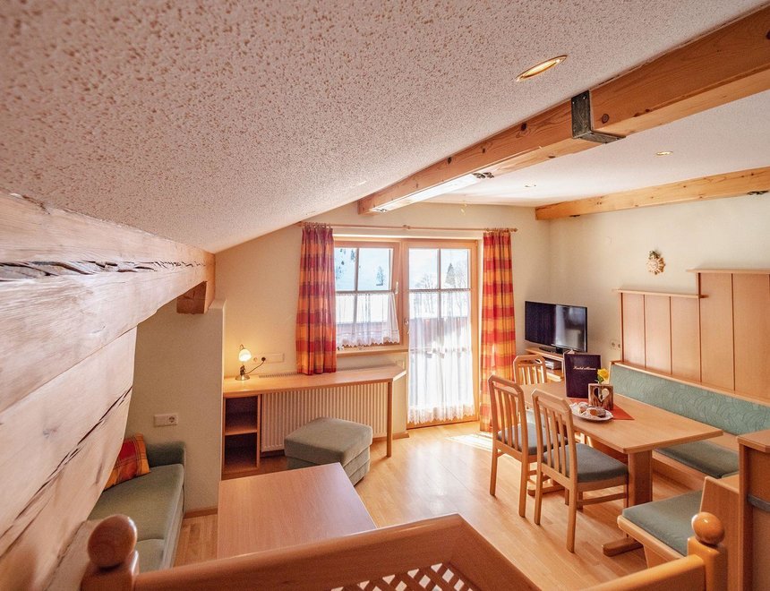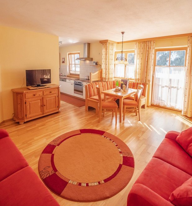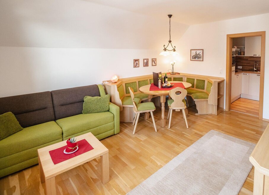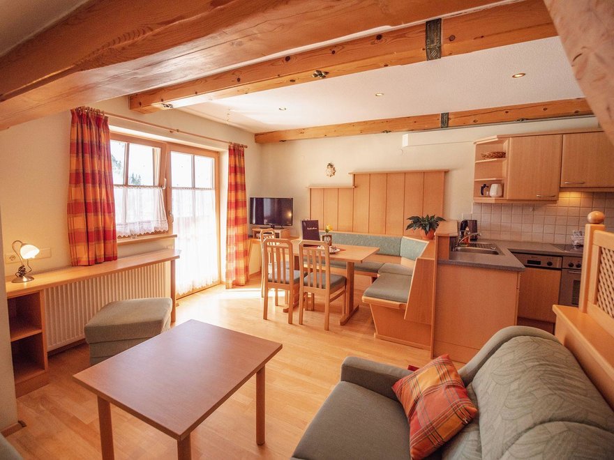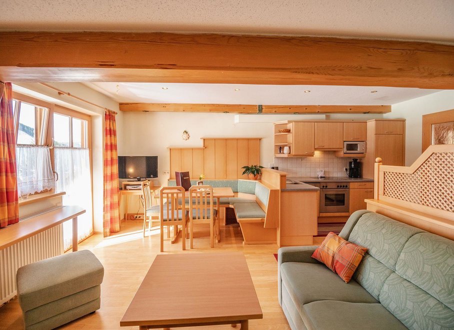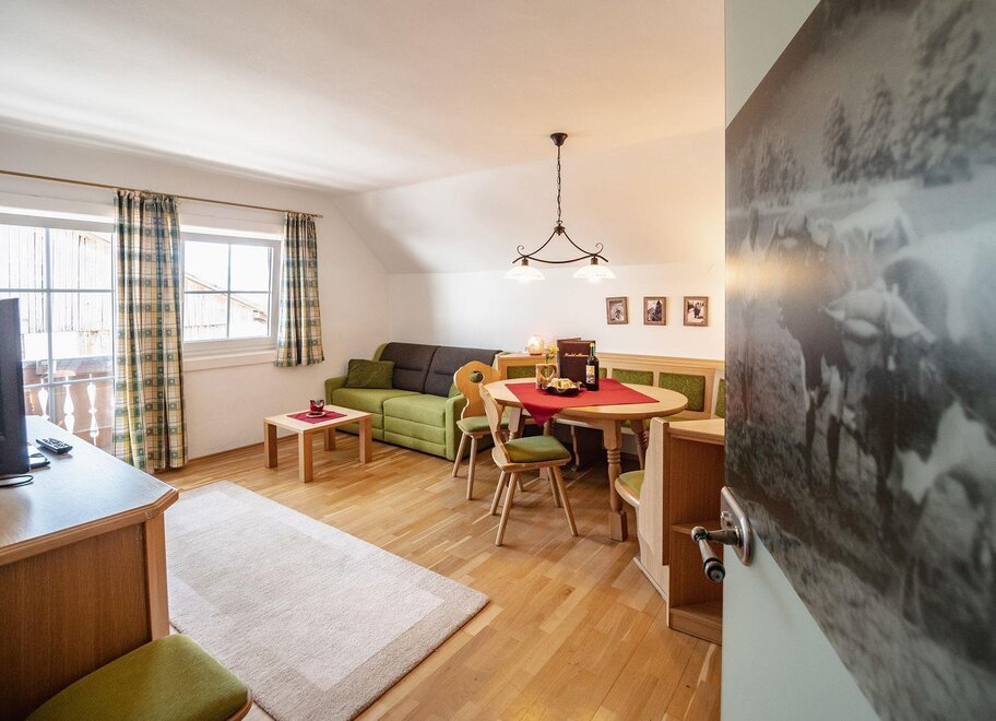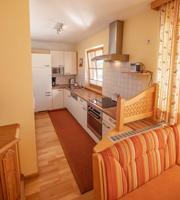 Apartament w stylu wiejskim o powierzchni 55 m². Ten apartament jest idealny dla 2 – 4 osób i oferuje wszelkie udogodnienia, jakich pragniecie podczas wakacji. Przytulnie urządzony salon z częścią wypoczynkową i wygodną kanapą (możliwość spania dla 2 osób) oraz w pełni wyposażona kuchnia zapewniają czas na relaks. Czeka na Was również południowy balkon z widokiem na Schladminger Tauern.