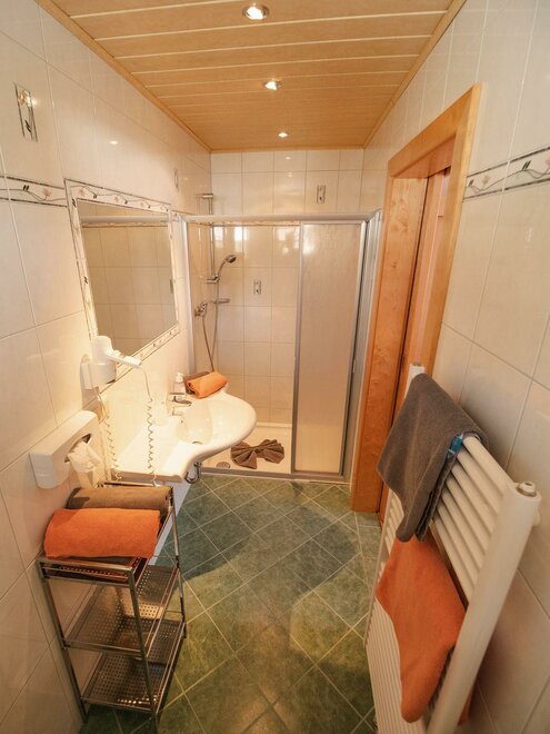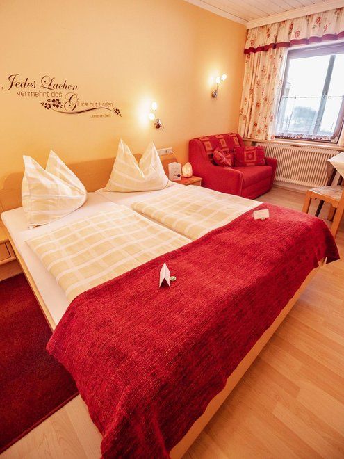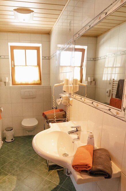 Nasze pokoje dwuosobowe urządzone są w stylu wiejskim i wyposażone w przytulny kącik do siedzenia, łazienkę z prysznicem/WC, telewizję satelitarną oraz bezpłatne W-LAN. Przez filiżankę gorącej herbaty i wciągającą książkę z naszej urokliwej biblioteczki, mogą Państwo naprawdę cieszyć się urlopem. Pokoje są w bardzo dobrym stanie, a dzięki dbałości o szczegóły poczują Państwo atmosferę wiejskiego domu.